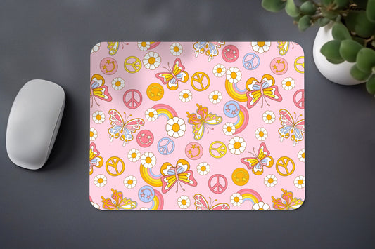 Personalized Groovy Floral smiley Mouse Pad, groovy butterfly Mouse Pad, personalized Teacher Gift, Office Supplies, Work From Home Gift