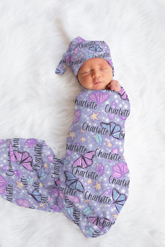 Whimsical Butterfly Swaddle Bow / Hat Set for Newborn
