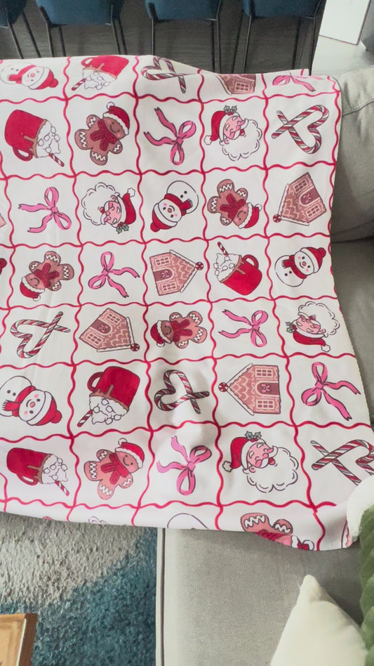 Christmas Gingerbread Sherpa Blanket | Holiday Santa, Candy Cane, Gingerbread House holiday blanket