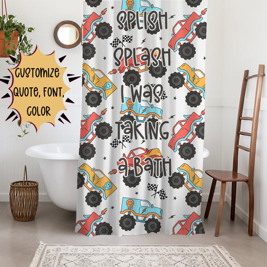 Shower Curtain Personalized boys, kids shower curtain trucks, custom shower curtain, kids bathroom decor boys