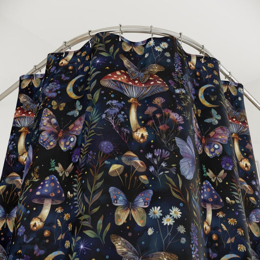 Dark Cottagecore Black Botanical Shower Curtain, Moody Dark Academia, Vintage Apothecary Witchy Eclectic Maximalist Bathroom Decor