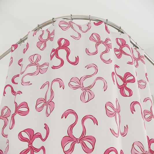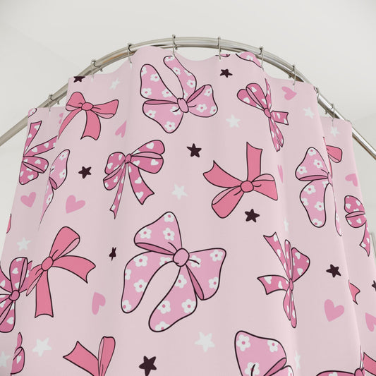 Pink Bow Shower Curtain Coquette decor, custom trendy coquette bathroom decor, preppy shower curtain, aesthetic bathroom decor personalized
