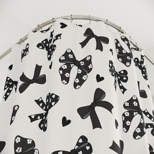 Black and white Bow Shower Curtain, custom trendy coquette bathroom decor, preppy shower curtain, aesthetic bathroom decor personalized