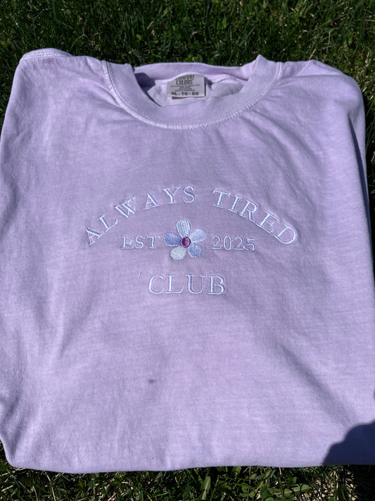 Always Tired Embroidered t-shirt Comfort Colors