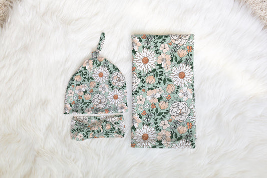 Personalized Floral Baby Swaddle Blanket newborn boho, coming home hospital announcement reveal outfit, custom name blanket baby shower gift