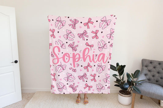 Personalized coquette pink bow Blanket, coquette room decor, preppy stuff room decor, pink bow baby blanket, bow decor