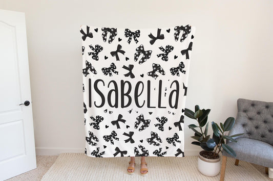 Personalized coquette black bow Blanket, coquette room decor, preppy stuff room decor, trendy bow baby blanket, bow decor