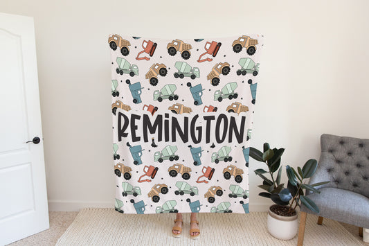 Personalized Boys Dinosaur Blanket Blue Checkered