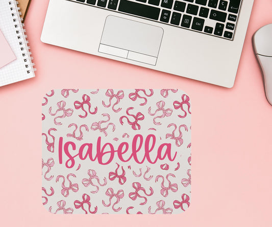Custom Pink Bows Mouse Pad, Personalized Rectangle Desk Mat, Office Accessories, Custom Name, Design, Cute Desk Decor, best friend gift idea