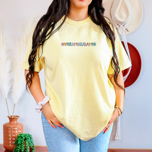 Overstimulated T-shirt Comfort Colors Neon Pastel