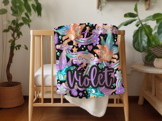 Personalized Purple Swaddle Bow Set Baby Blanket