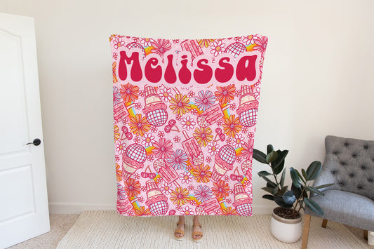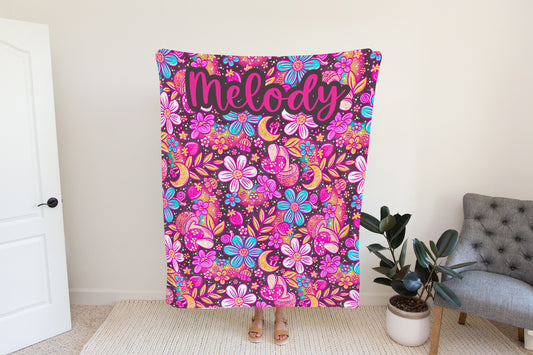 Personalized Swaddle Hat Set Bow Boho Floral Baby Blanket