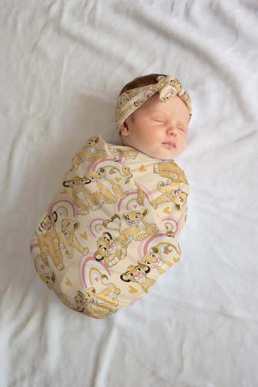 Custom Lion King Swaddle and bow set newborn, Swaddle and hat set, Newborn girl hospital reveal outfit, baby shower gift, stretchy swaddle