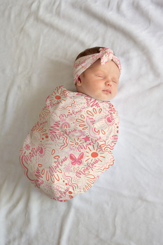 Personalized Strawberry Pink Baby Swaddle Set for newborn