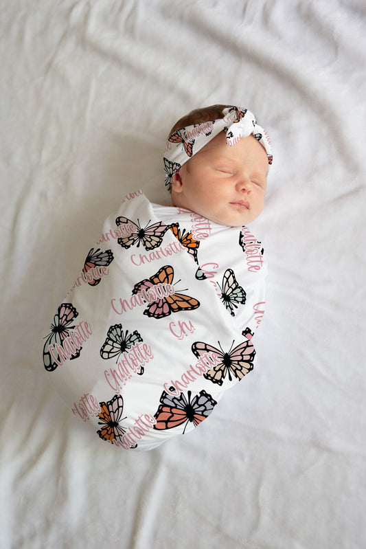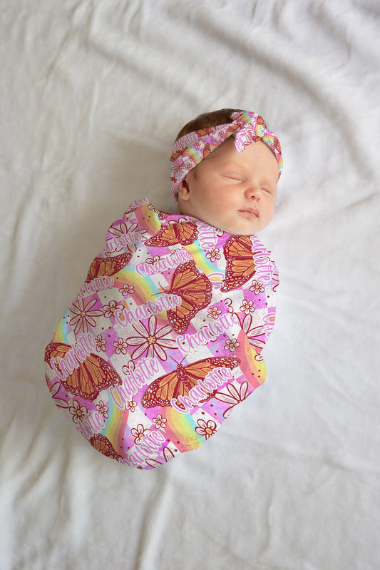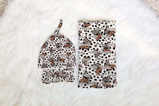 Whimsical Butterfly Swaddle Bow / Hat Set for Newborn
