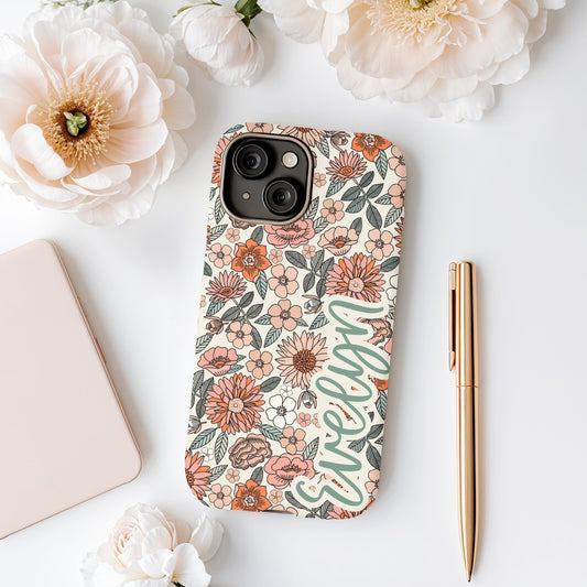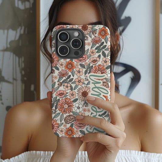 Personalized Floral Tough Phone Case for iPhone, Samsung and Google Phones