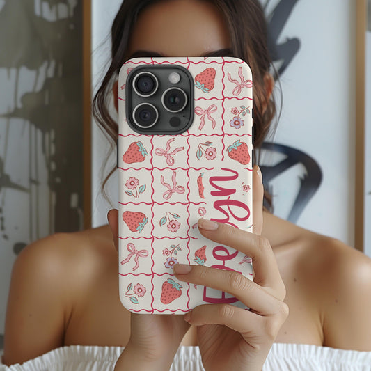 Custom MAGSAFE iphone case personalized iphone 16 15 14 13 pro max plus, coquette strawberry preppy girl iphone case vintage