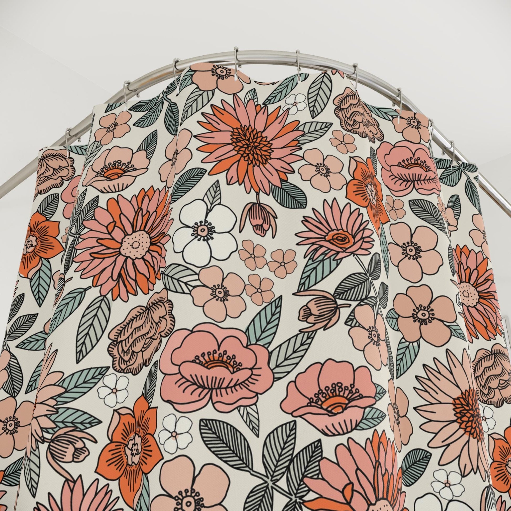 Boho Shower Curtain, shower curtain retro, shower curtain boho, custom shower curtain, vintage shower curtain, botanical shower curtain