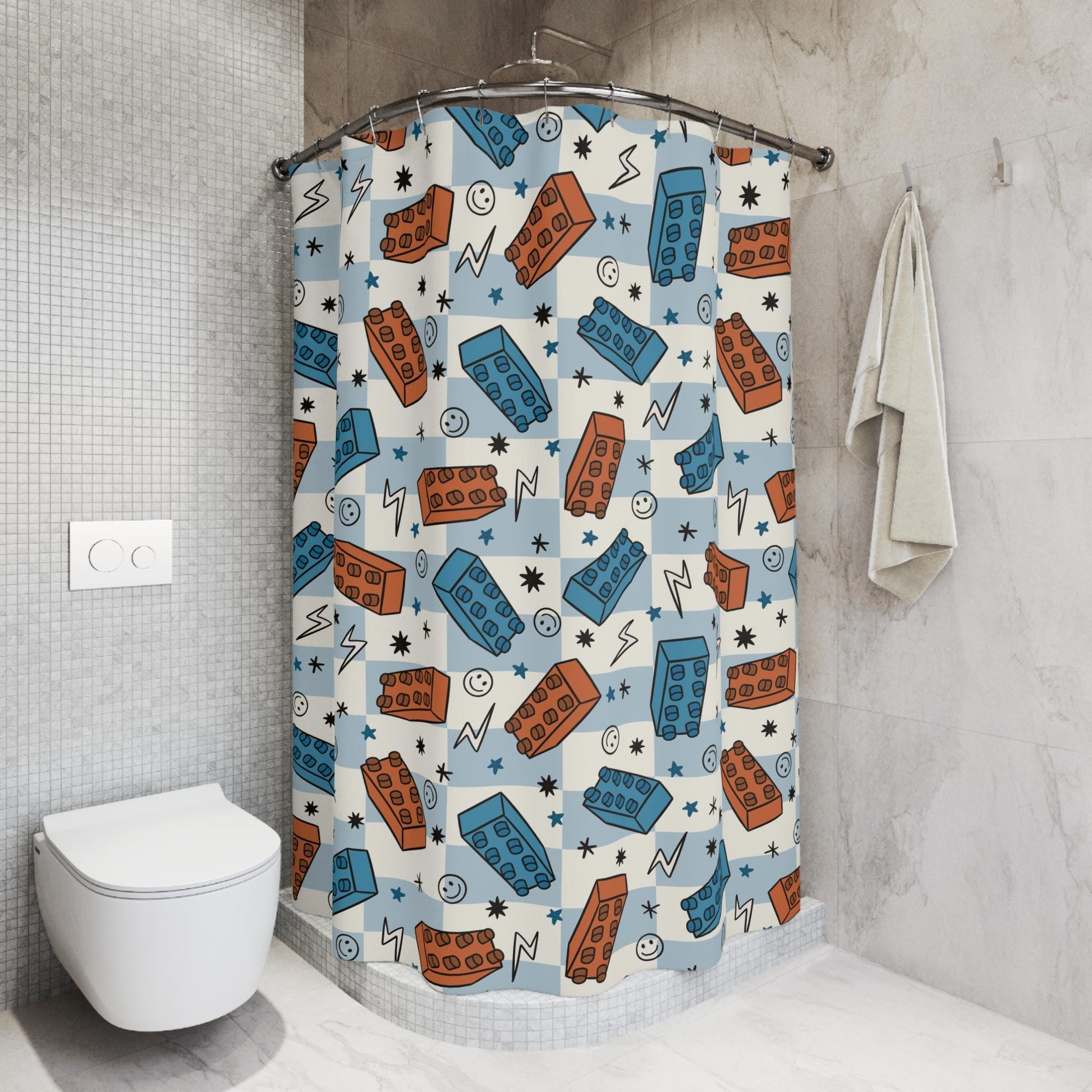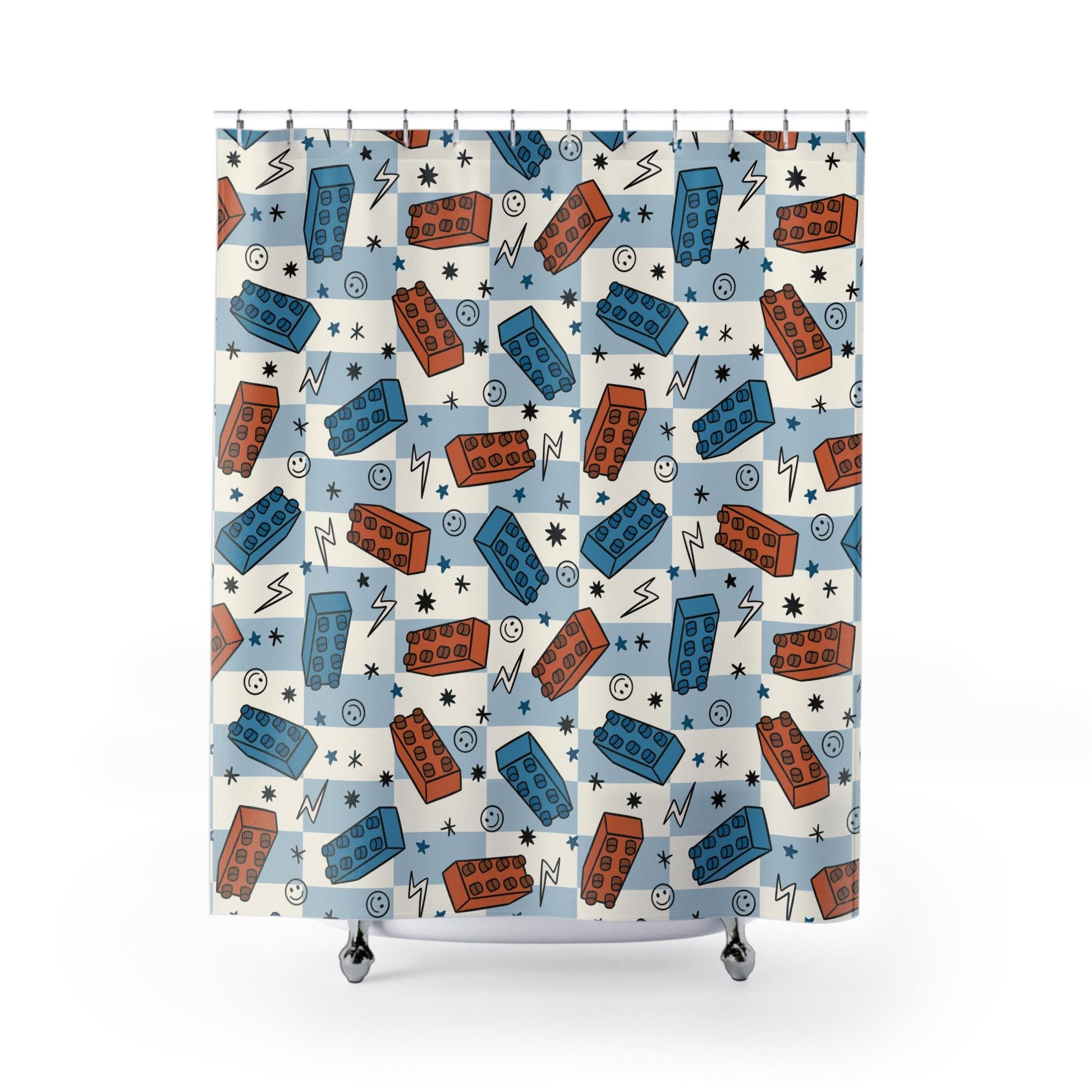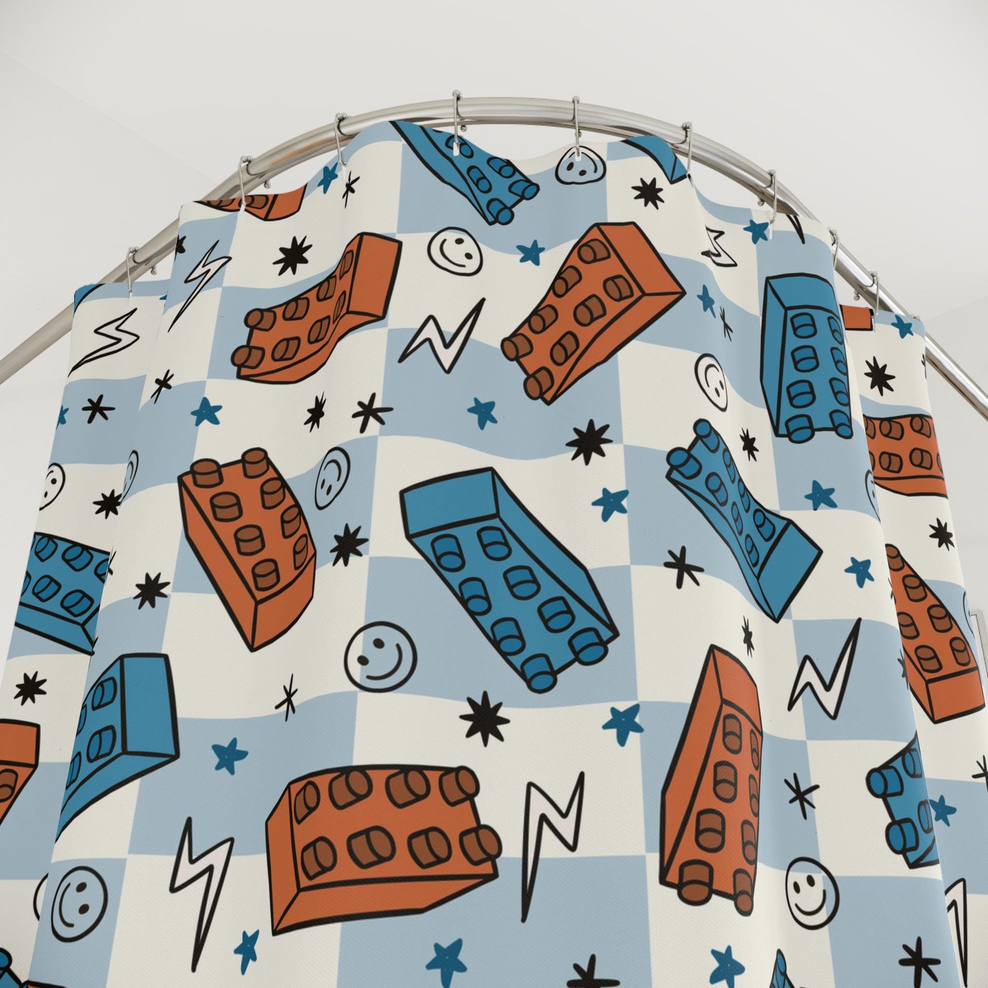 Boys Shower Curtain Blocks, Personalized boys bathroom shower kids curtain checkered, custom shower curtain, kids bathroom decor boys gift