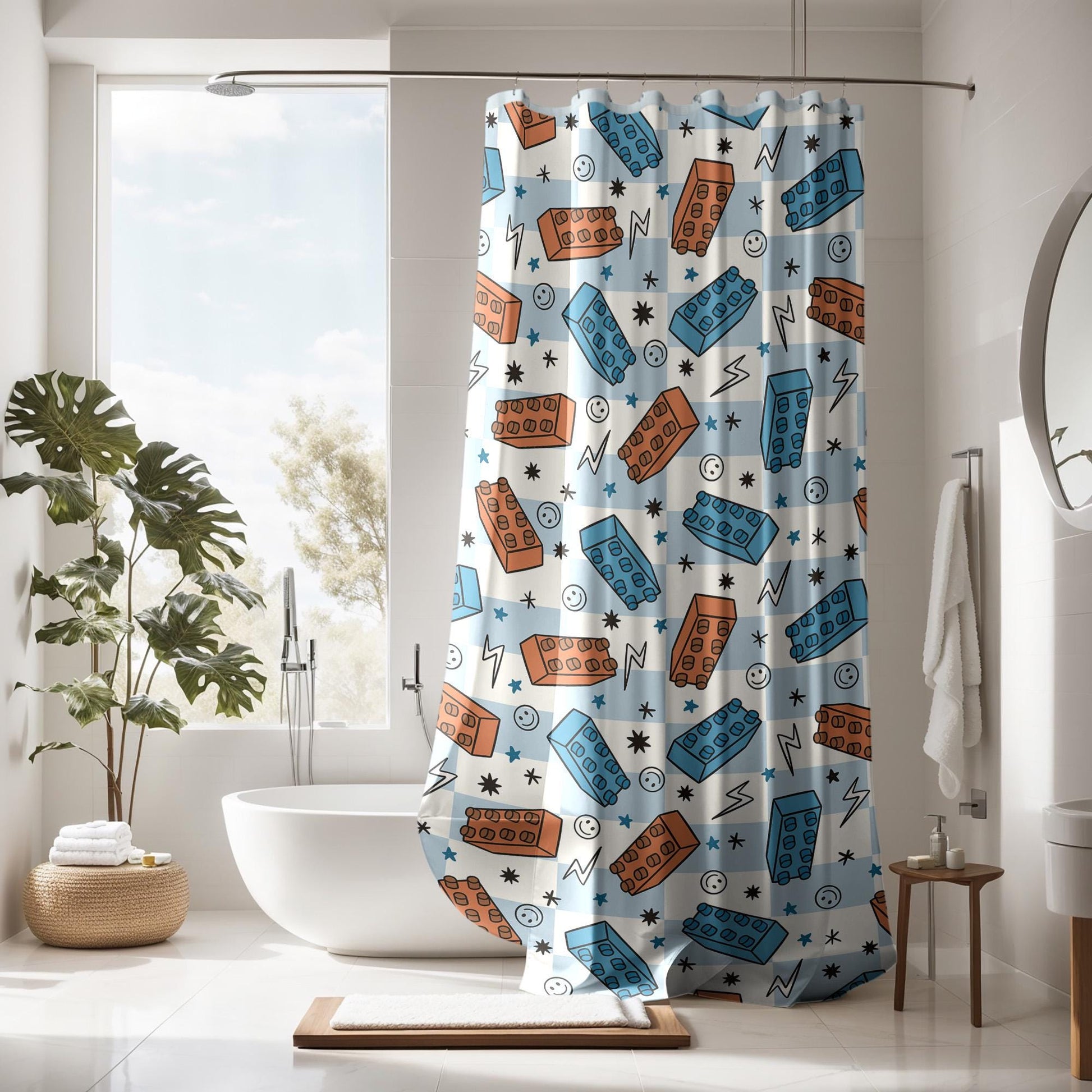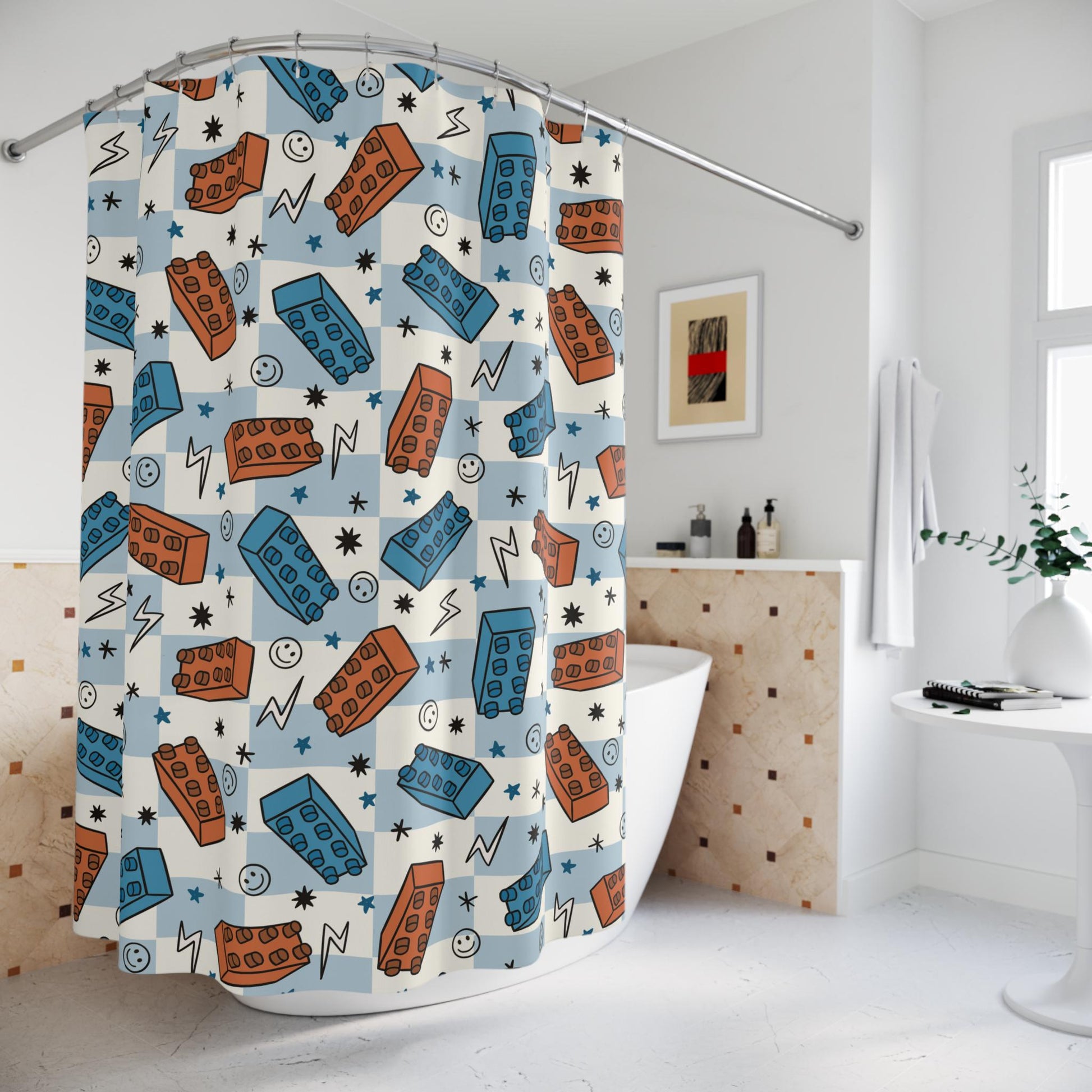 Crafted from high-quality, water-resistant fabric, it keeps the bathroom dry while ensuring durability and easy maintenance. The vibrant checkered pattern and colorful blocks create a fun and energetic vibe, making it an exciting addition to your childs bathroom decor. Plus, with the custom name option, this curtain becomes a one-of-a-kind piece tailored just for your little one!