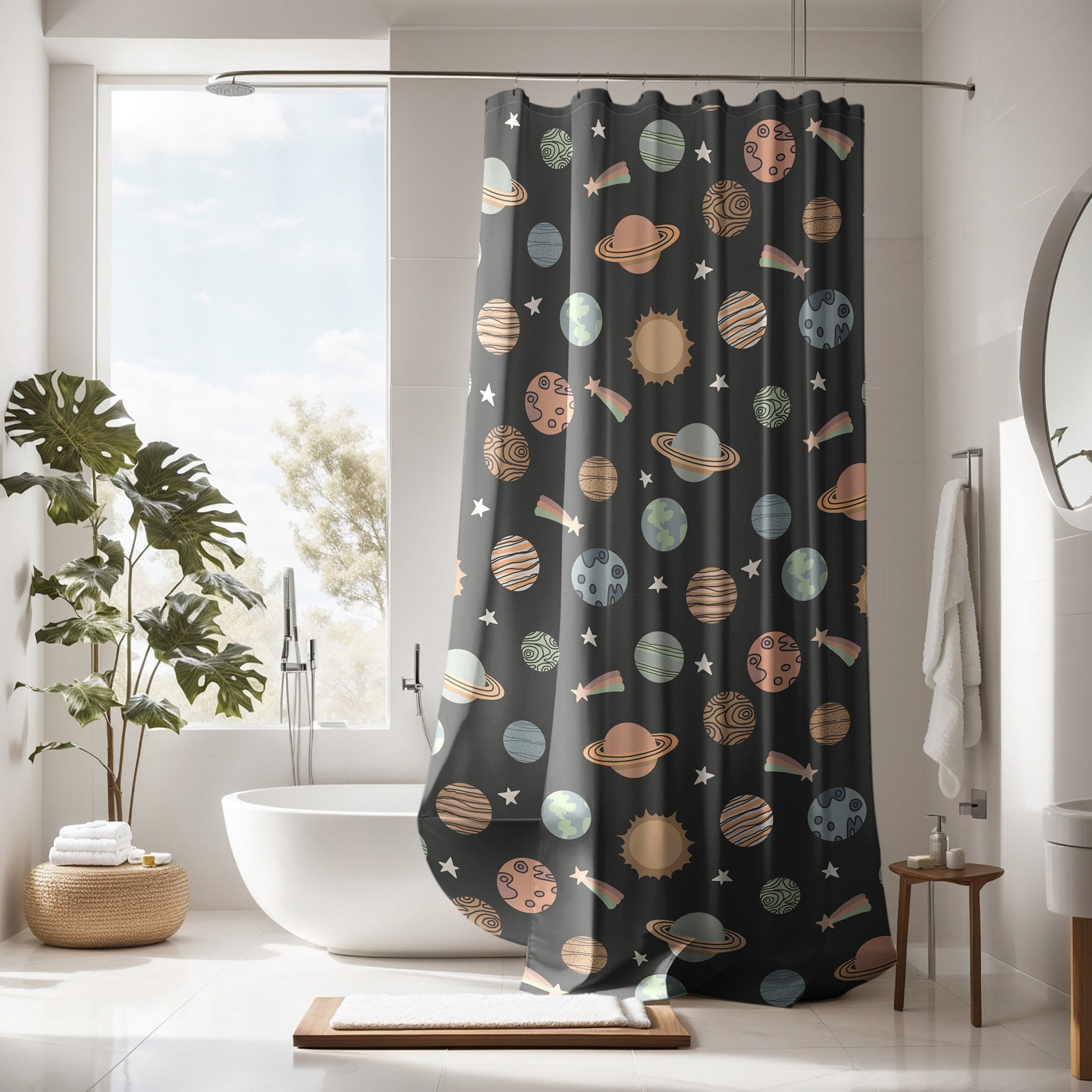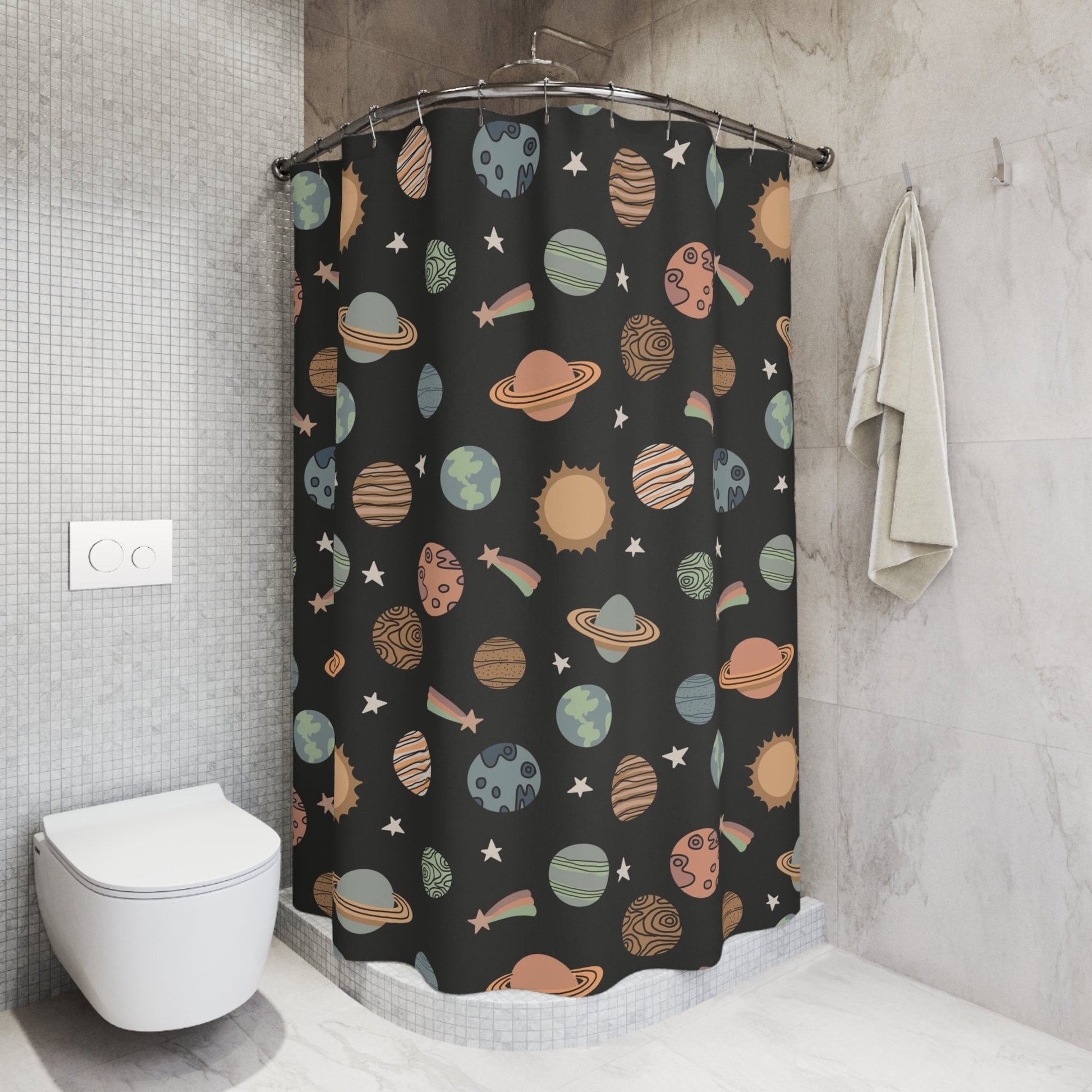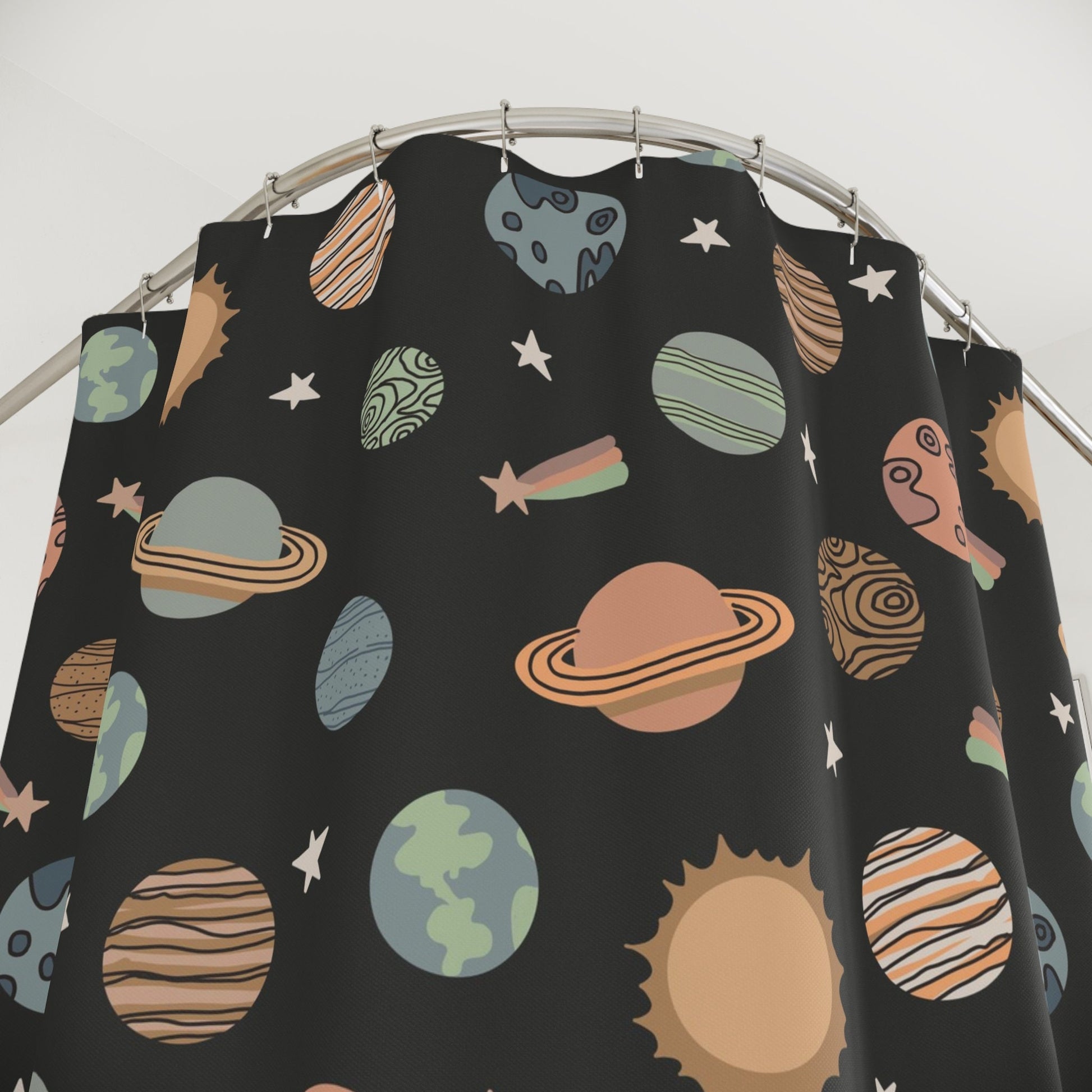 Boys Shower Curtain Personalized Planets, kids shower curtain Outerspace, shower curtain boho, custom shower curtain, vintage shower curtain