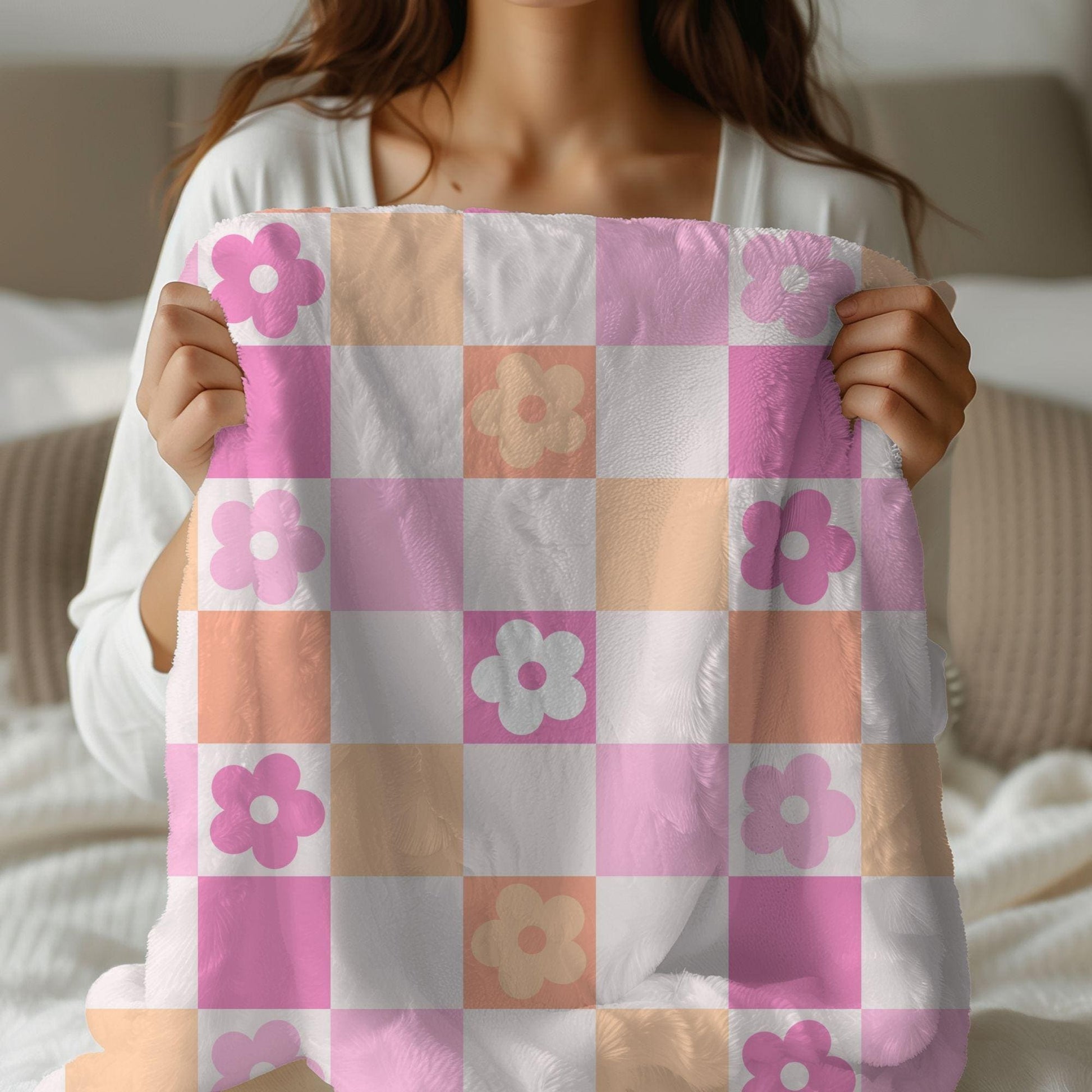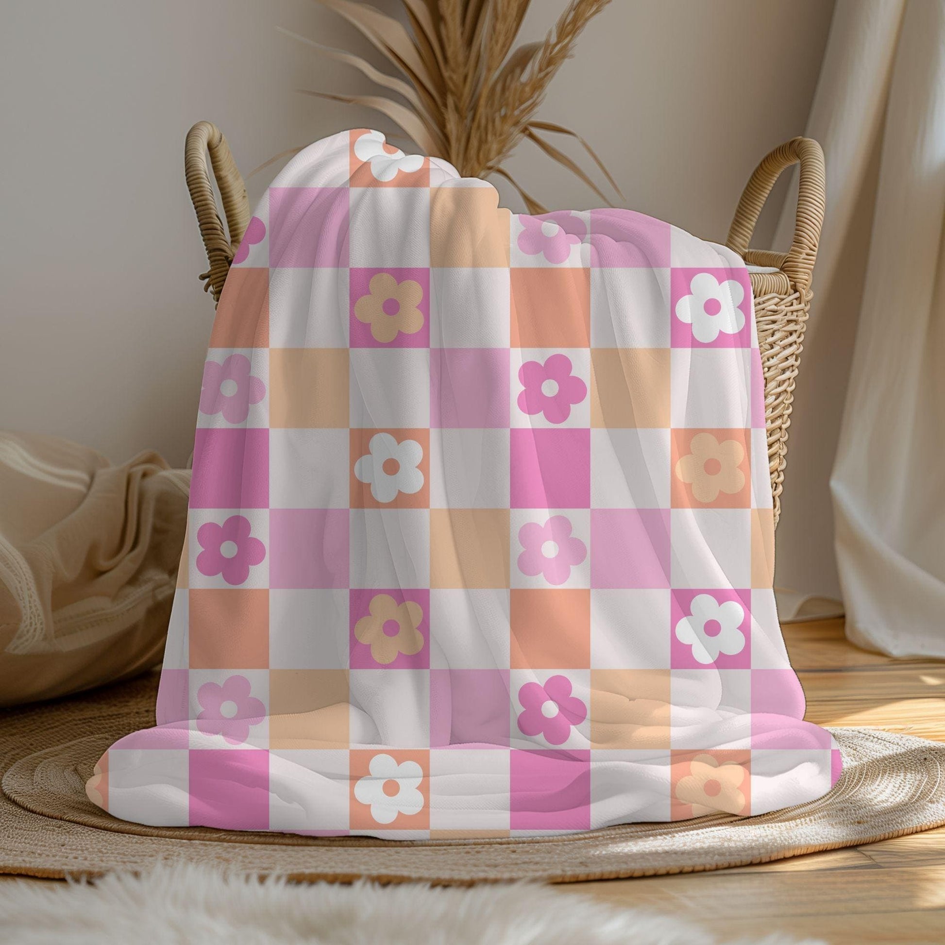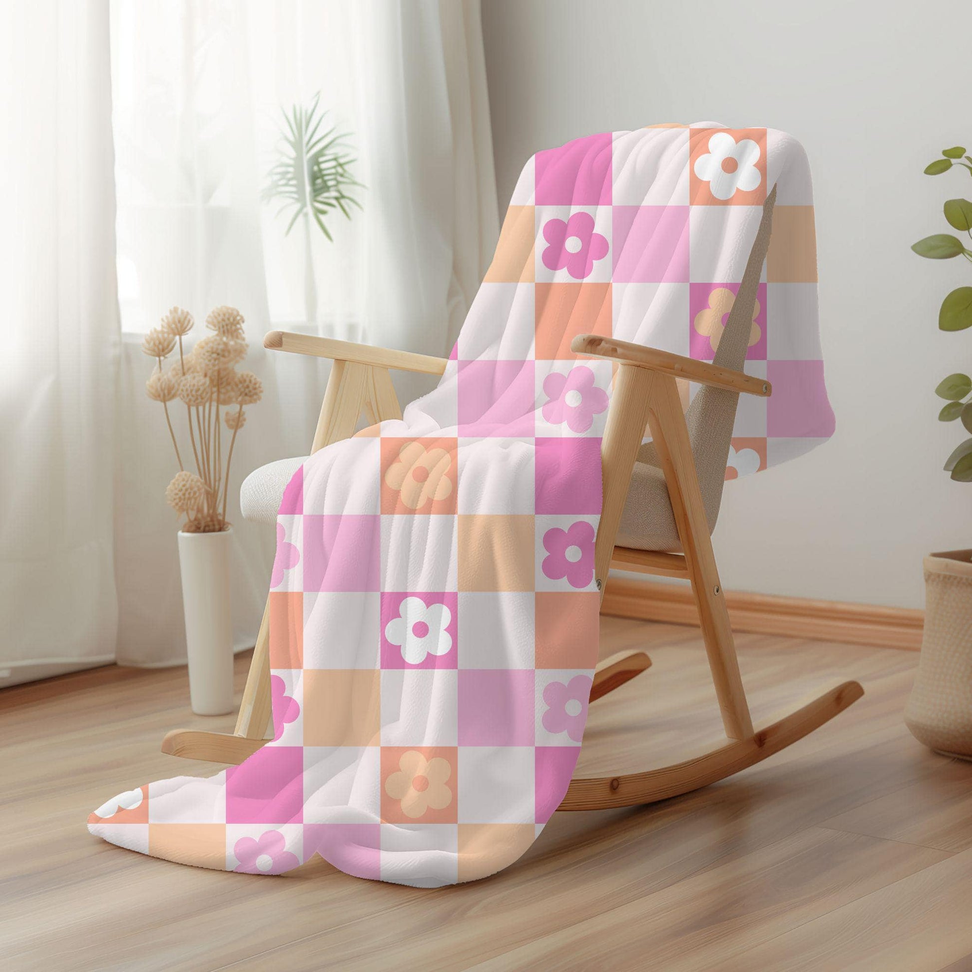 Make any space cozy and chic with this custom floral checkered throw!