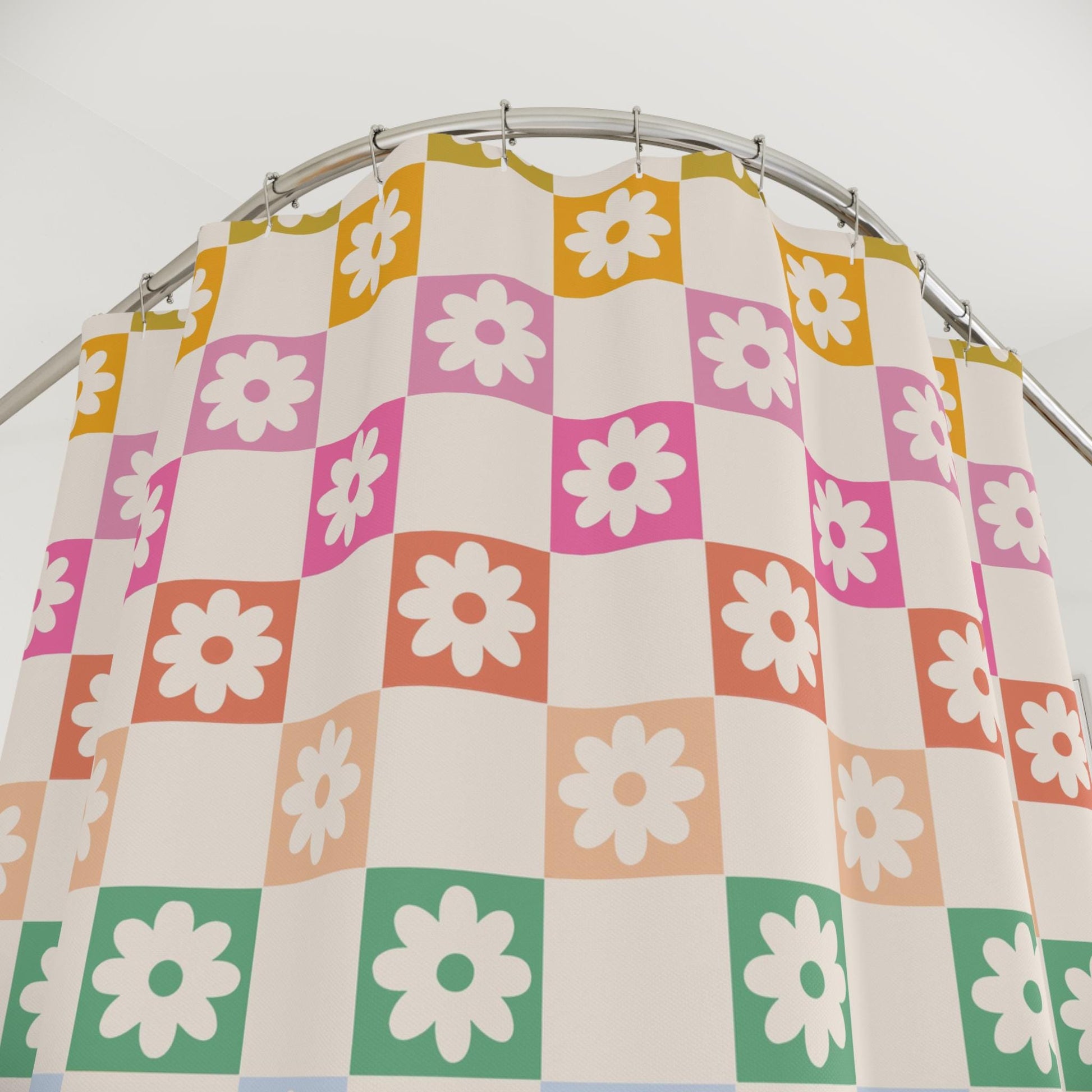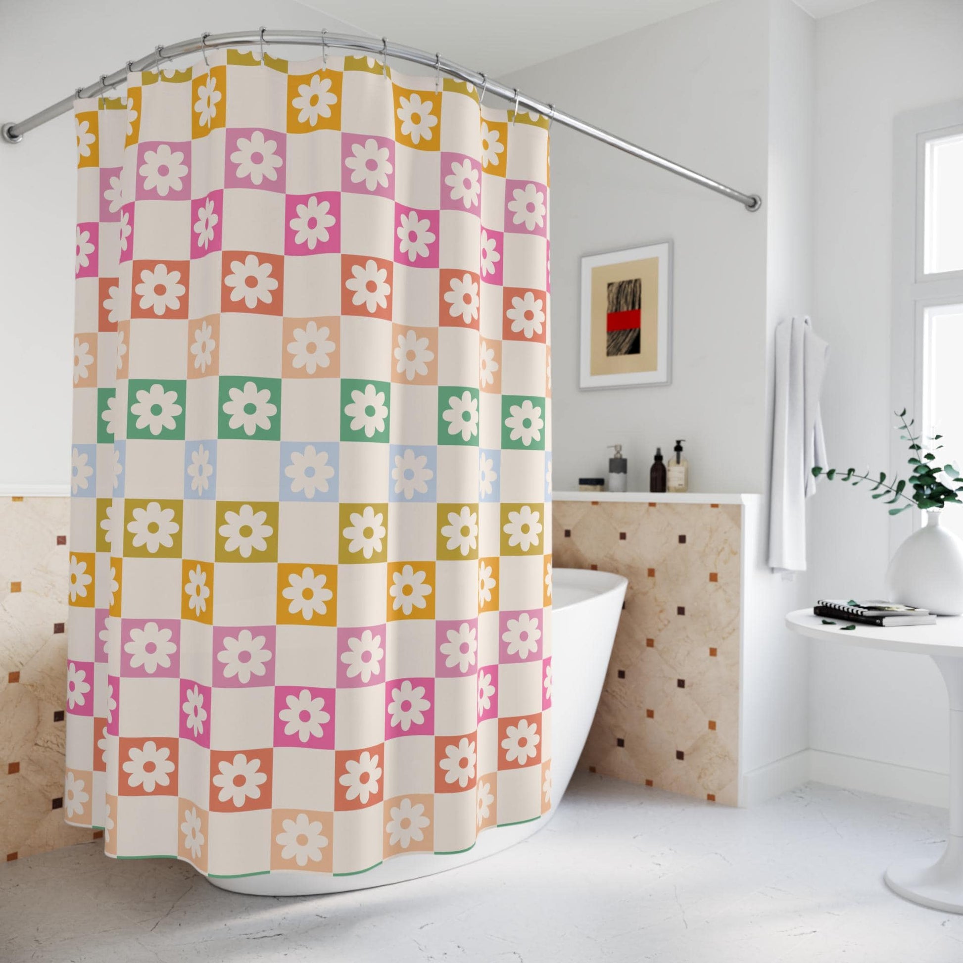 Checkered Retro Shower Curtain, preppy girl bathroom decor trendy, personalized custom shower curtain, aesthetic bathroom decor curtain