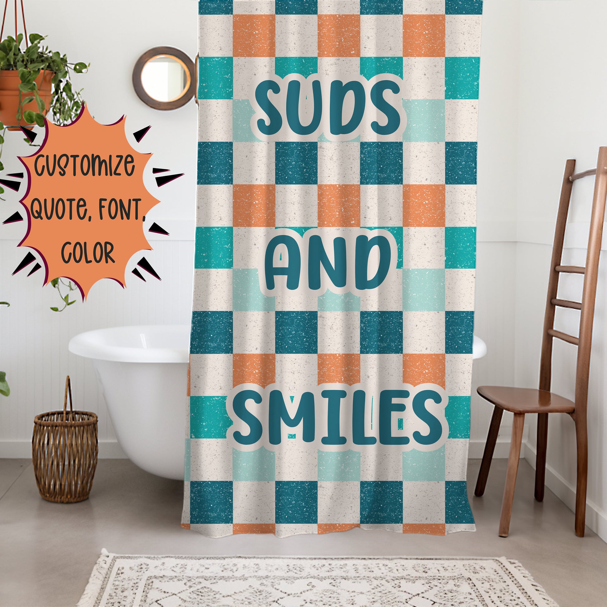 Add a touch of retro charm to your child's bathroom with our Checkered Shower Curtain Personalized for Boys. This unique shower curtain features a classic checkered pattern that blends effortlessly with boho and vintage decor styles, creating a fun and stylish atmosphere.