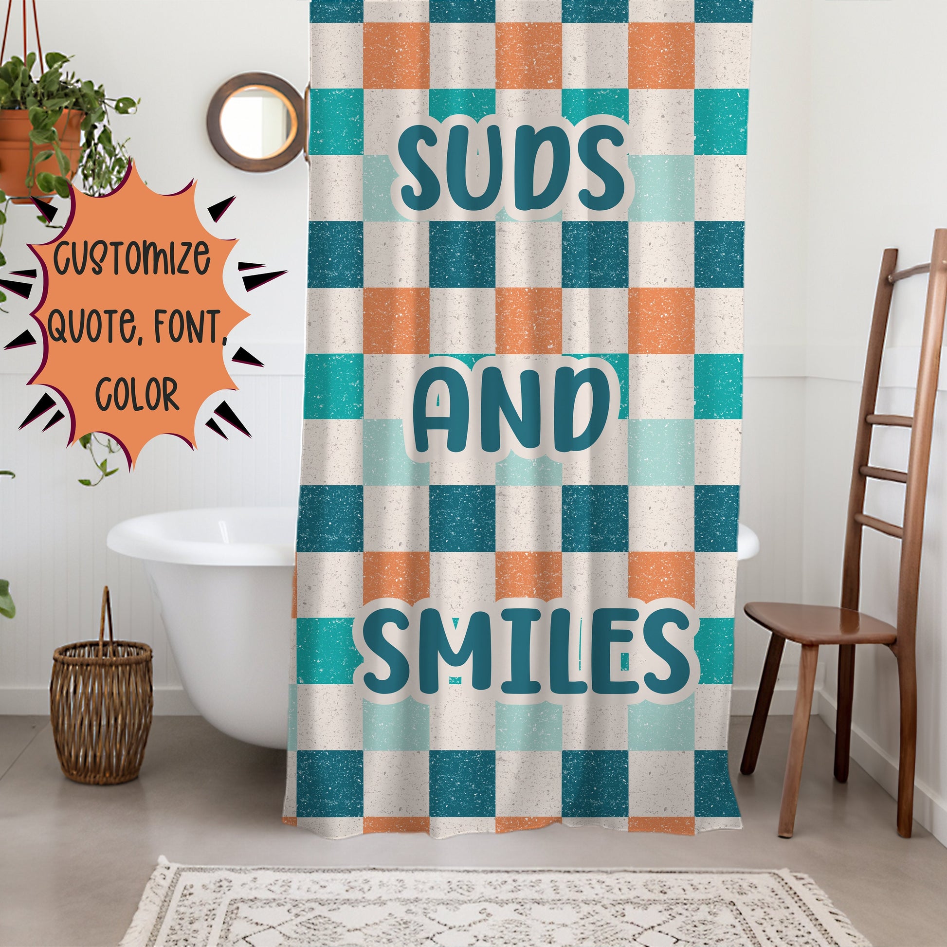 Checkered Shower Curtain Personalized boys, kids shower curtain retro, shower curtain boho, custom shower curtain, vintage shower curtain