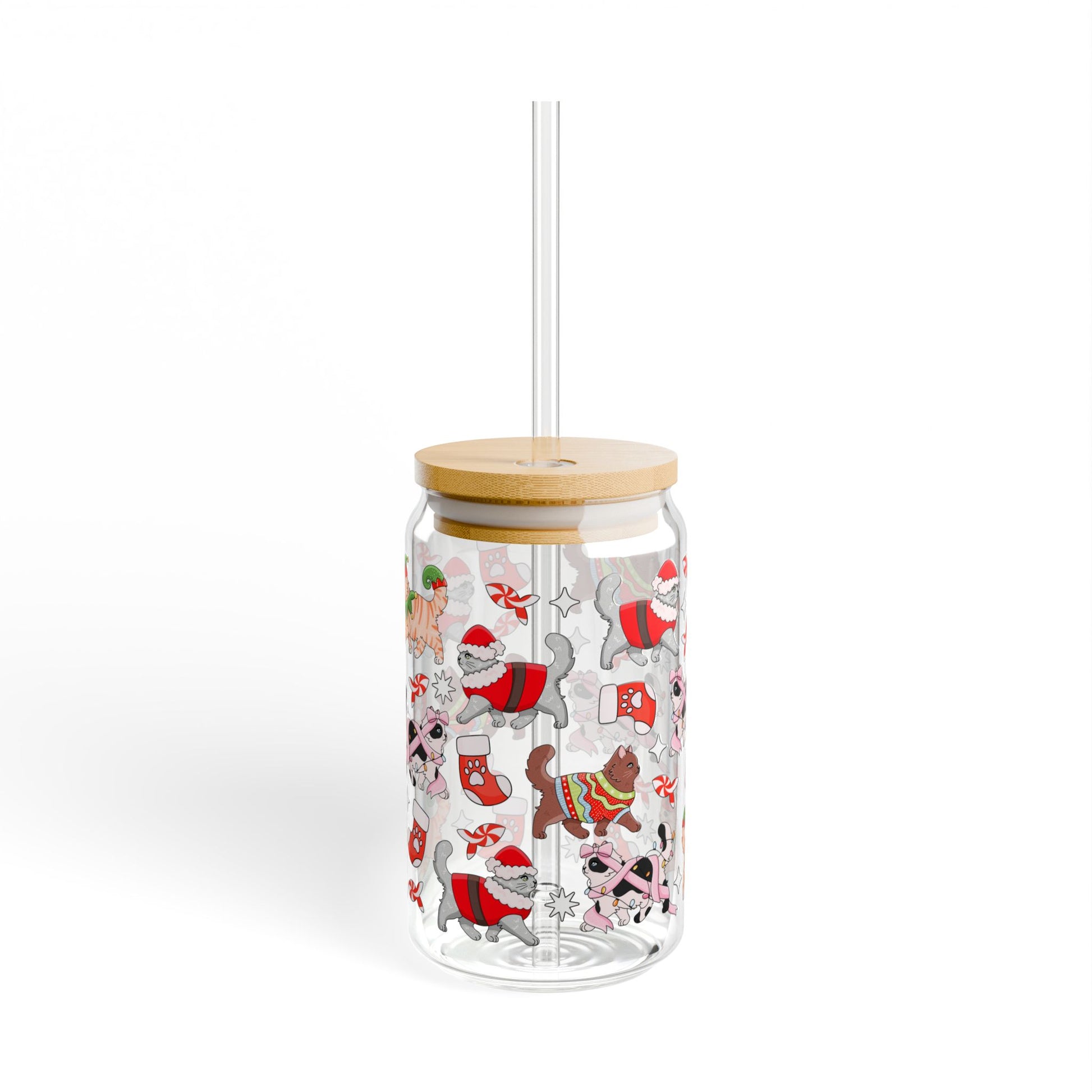 Christmas Cats Glass Can 16 oz
