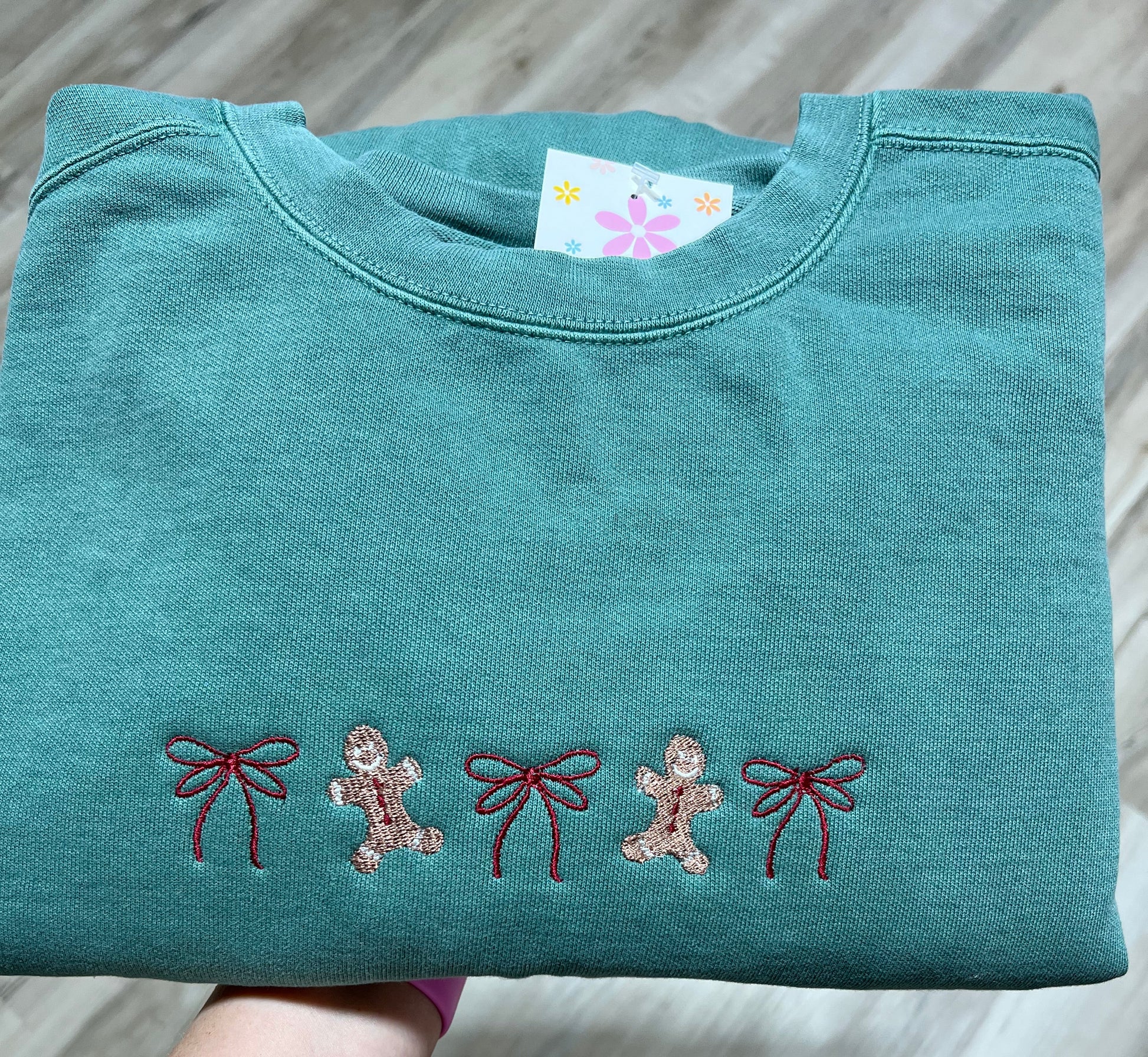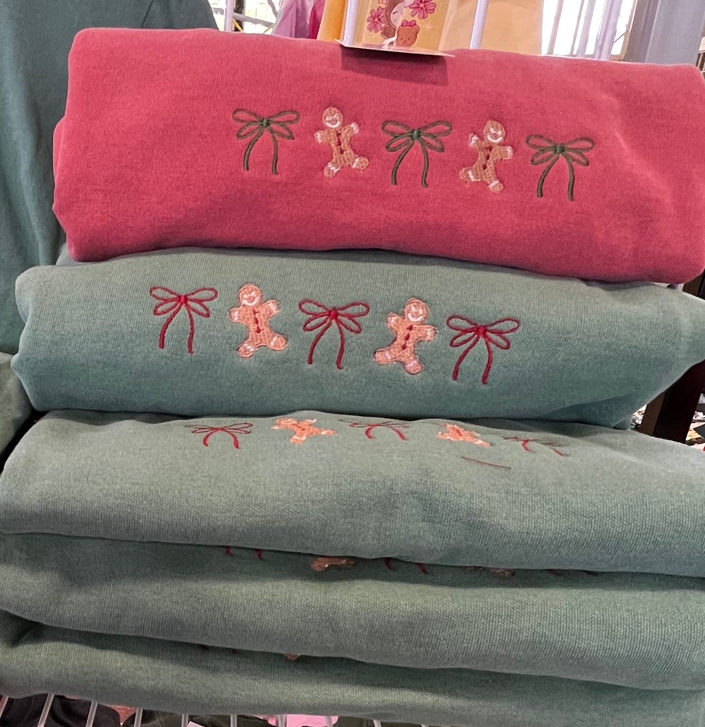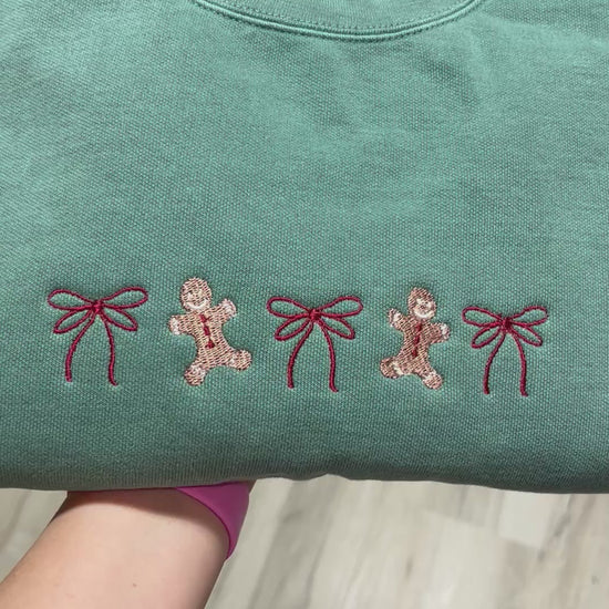 Christmas Gingerbread and Bow Embroidered Sweater