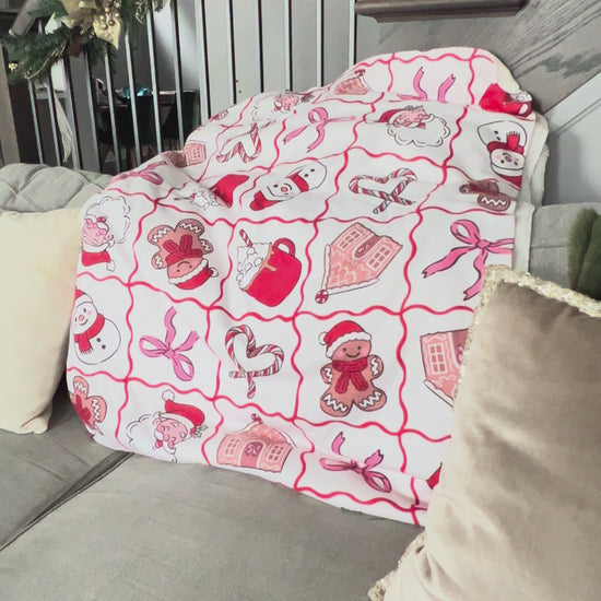 Christmas Gingerbread Sherpa Blanket | Holiday Santa, Candy Cane, Gingerbread House holiday blanket