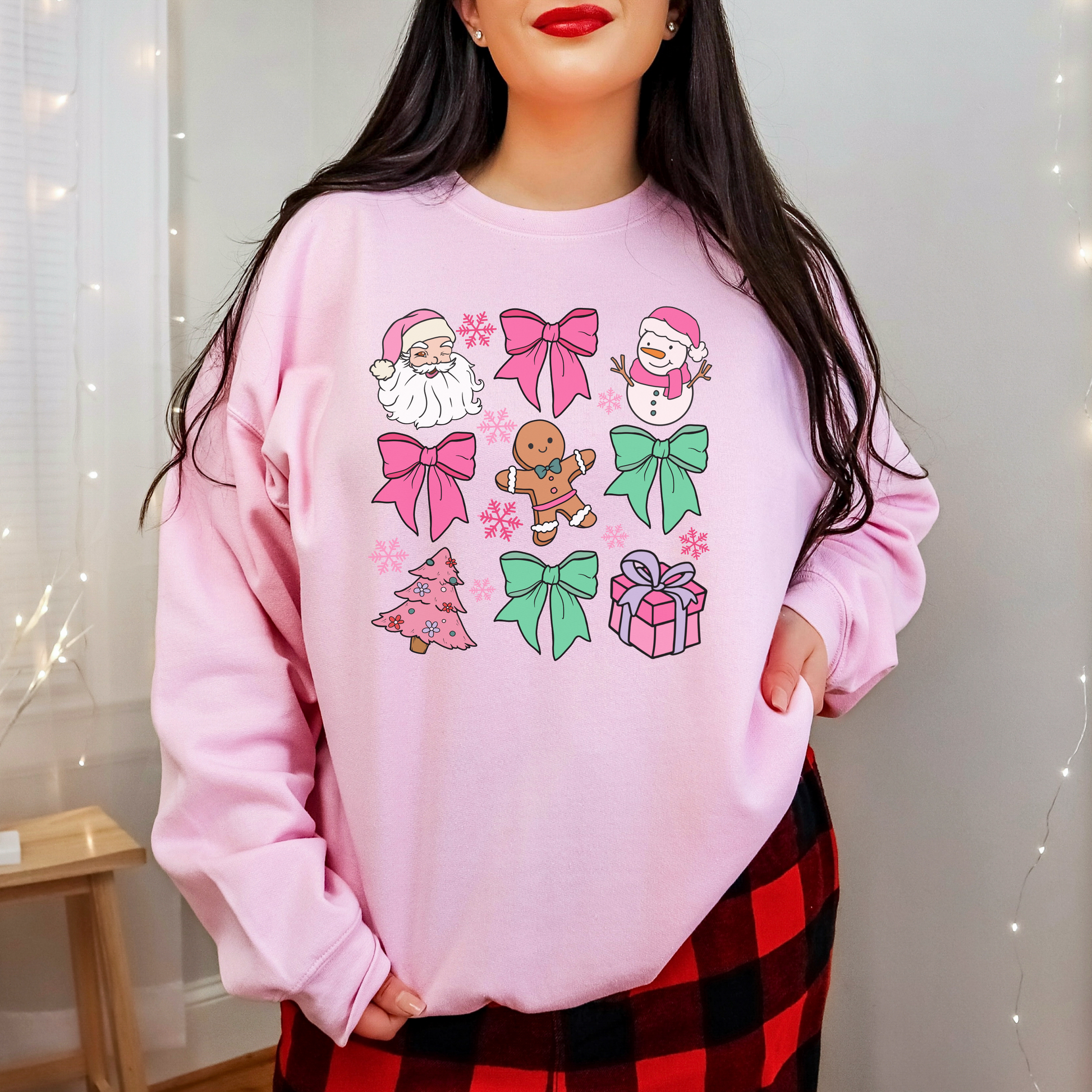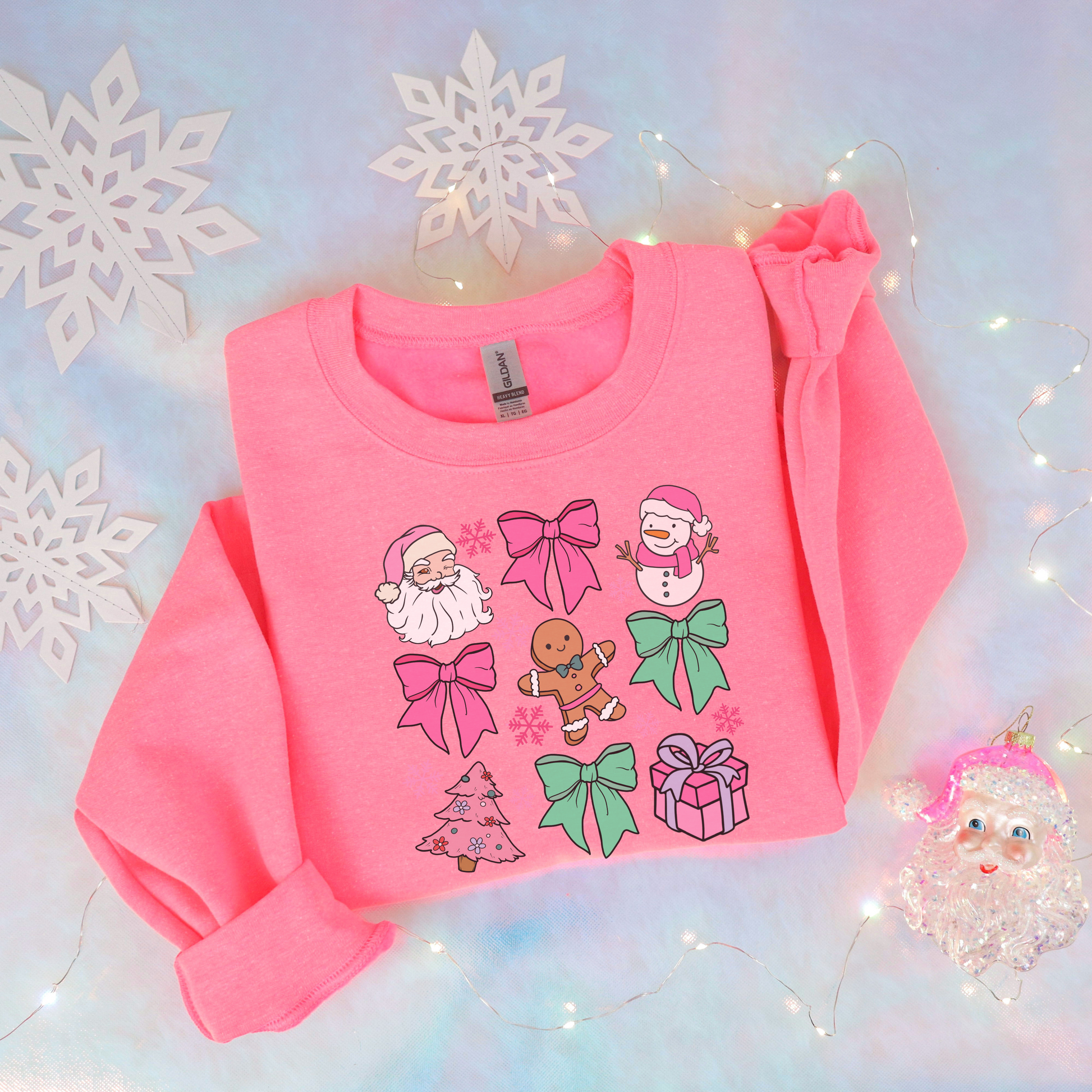 Get in the holiday spirit with this Pink Christmas Sweater! Featuring festive bows, Santa, and snowmen, this sweater is perfect for all your Christmas celebrations. Available in sizes small to 5xl, there's a perfect fit for everyone. Stay warm and stylish this season with this playful and quirky sweater.