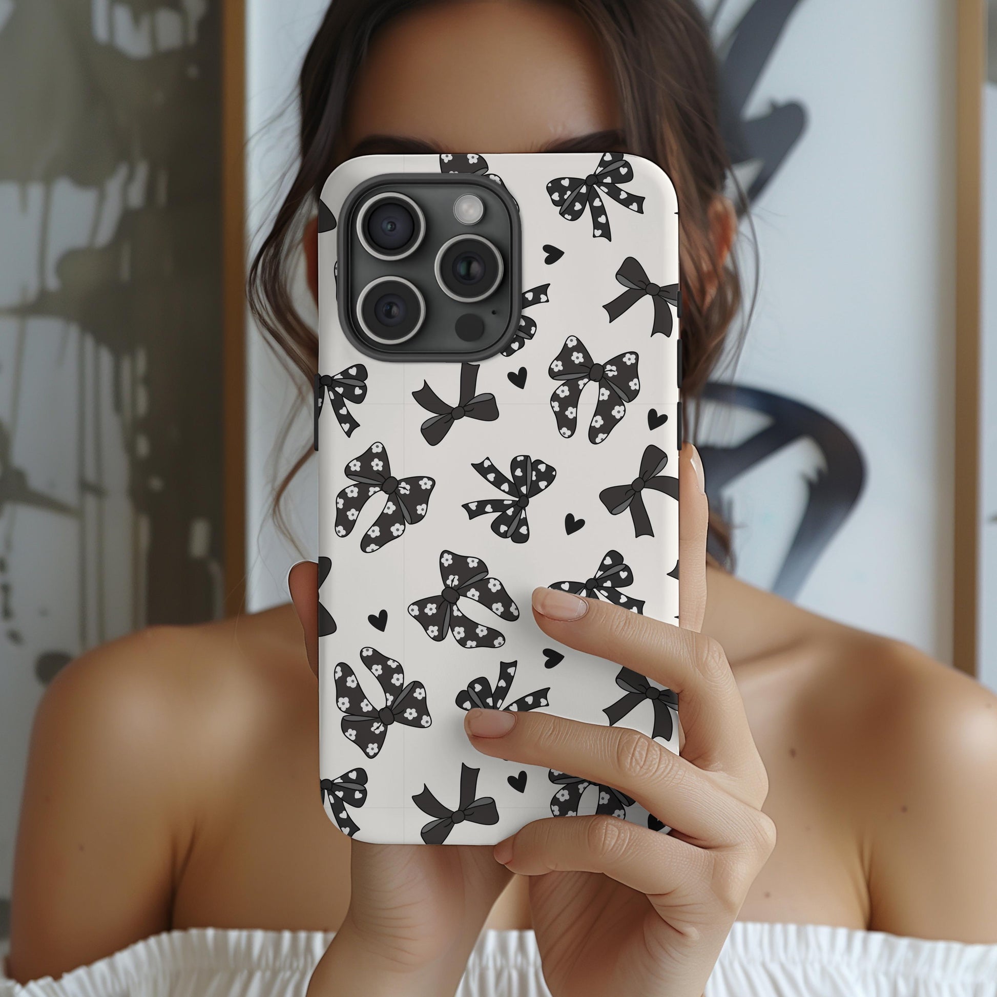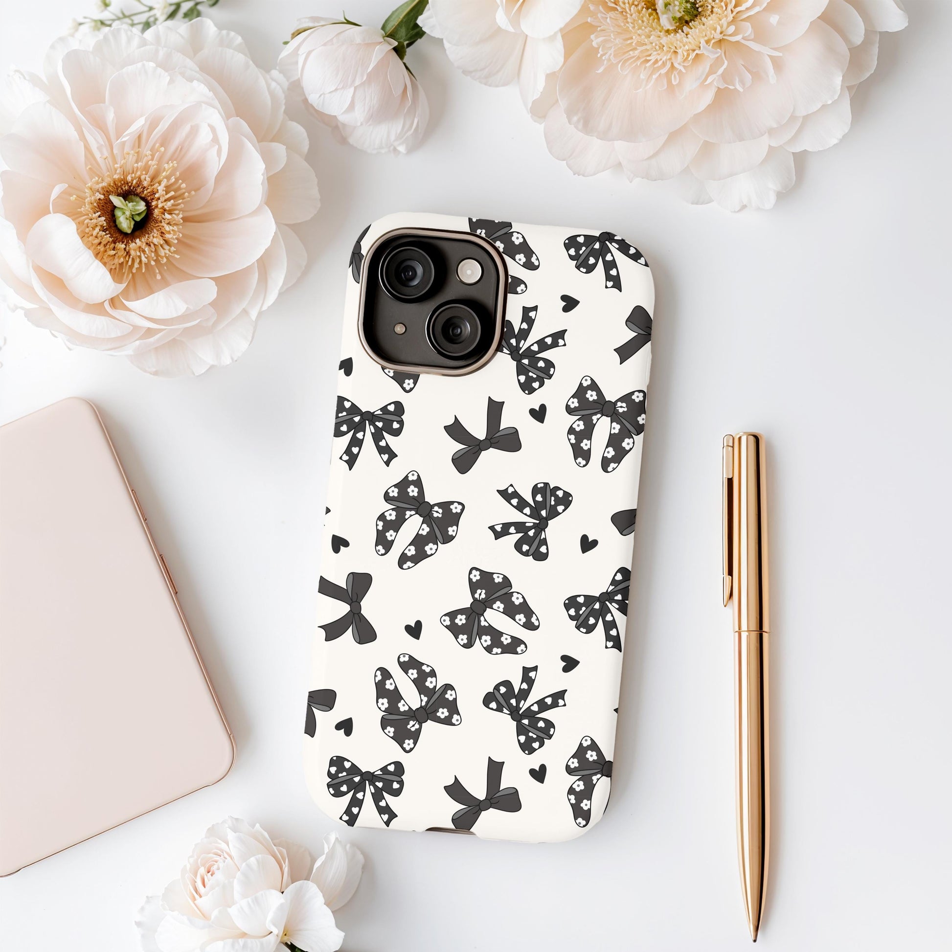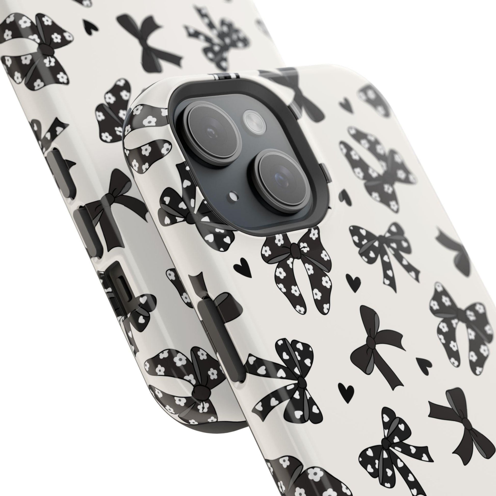 Custom black bow phone case iphone 16, 15, 14, 13 Pro Max, MAGSAFE Iphone case coquette, TOUGH Vintage black cream personalized phone case