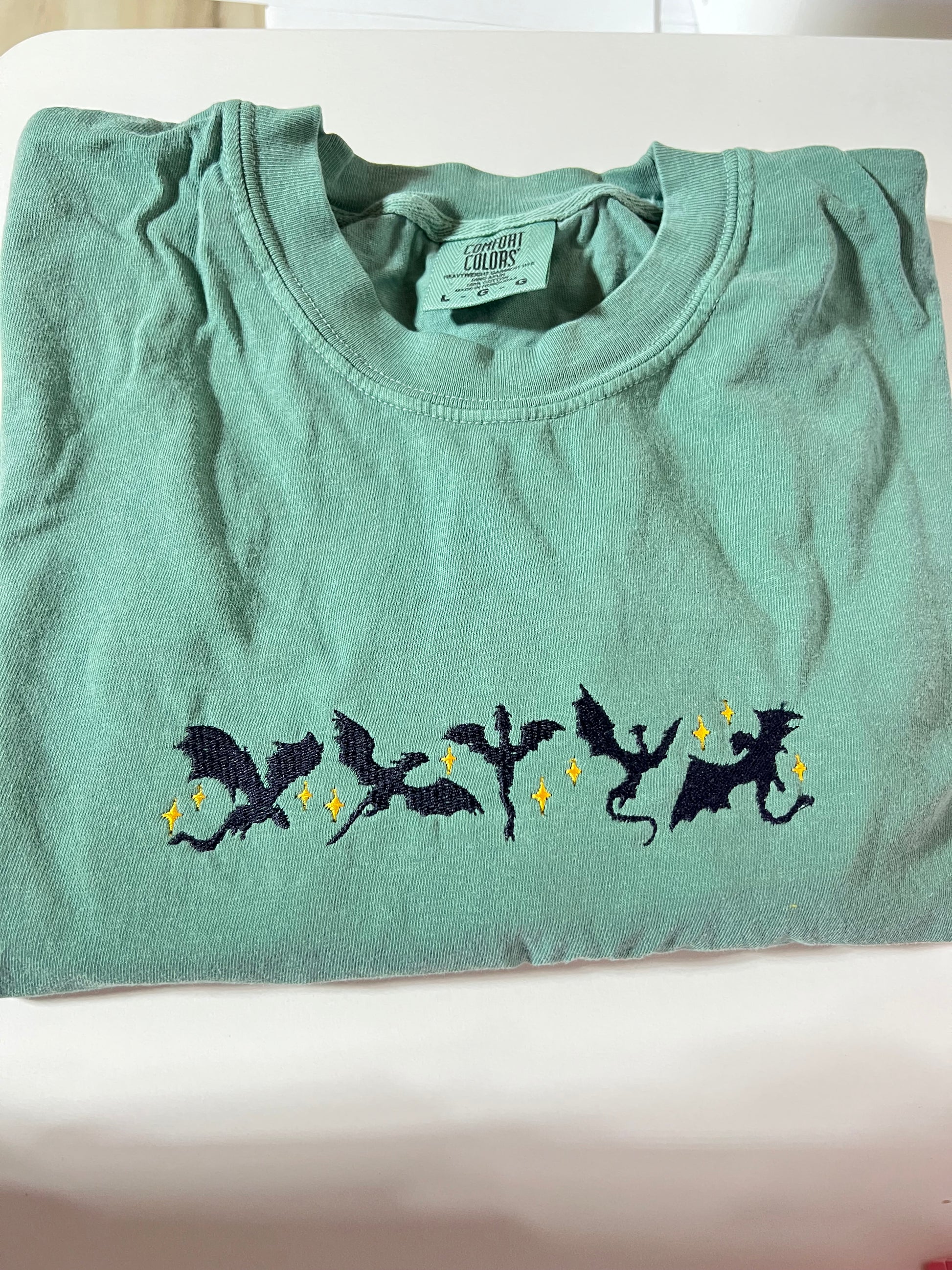 Soar into style with this Forth Wing-inspired embroidered tee! Perfect for fantasy fans who want to wear their love for dragons, magic, and adventure. The detailed embroidery adds a touch of whimsy to your everyday wardrobe, making it ideal for casual hangouts, book club meetups, or just showing off your fandom in the most adorable way possible. Comfortable, quirky, and totally conversation-starting—because why blend in when you can stand out?