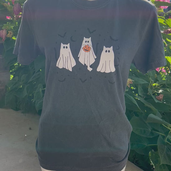 Ghost Kitty Comfort Colors T-shirt for Halloween Fall