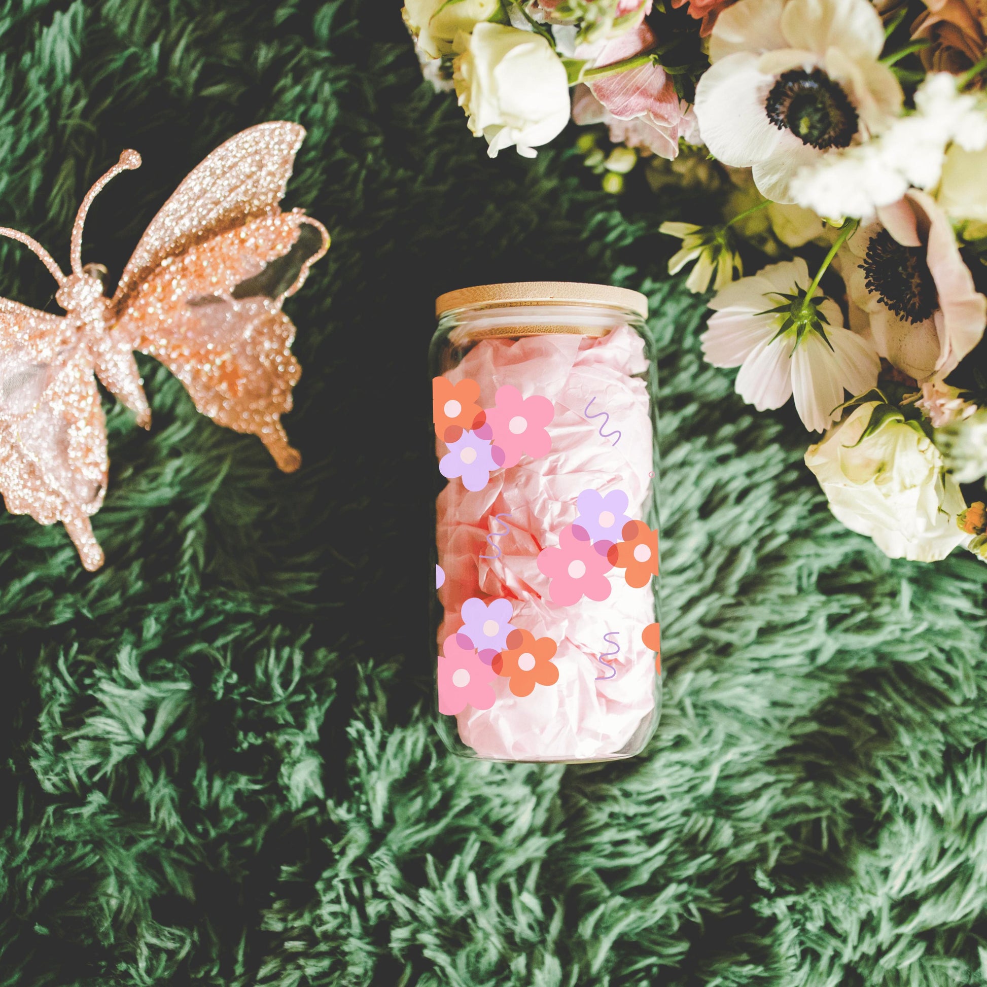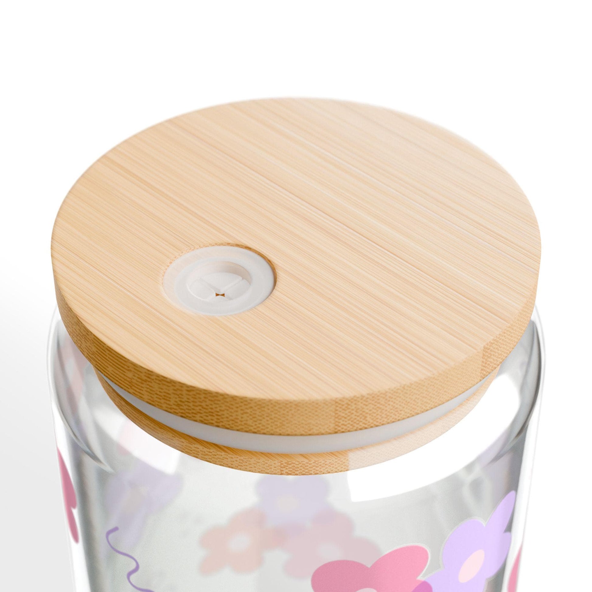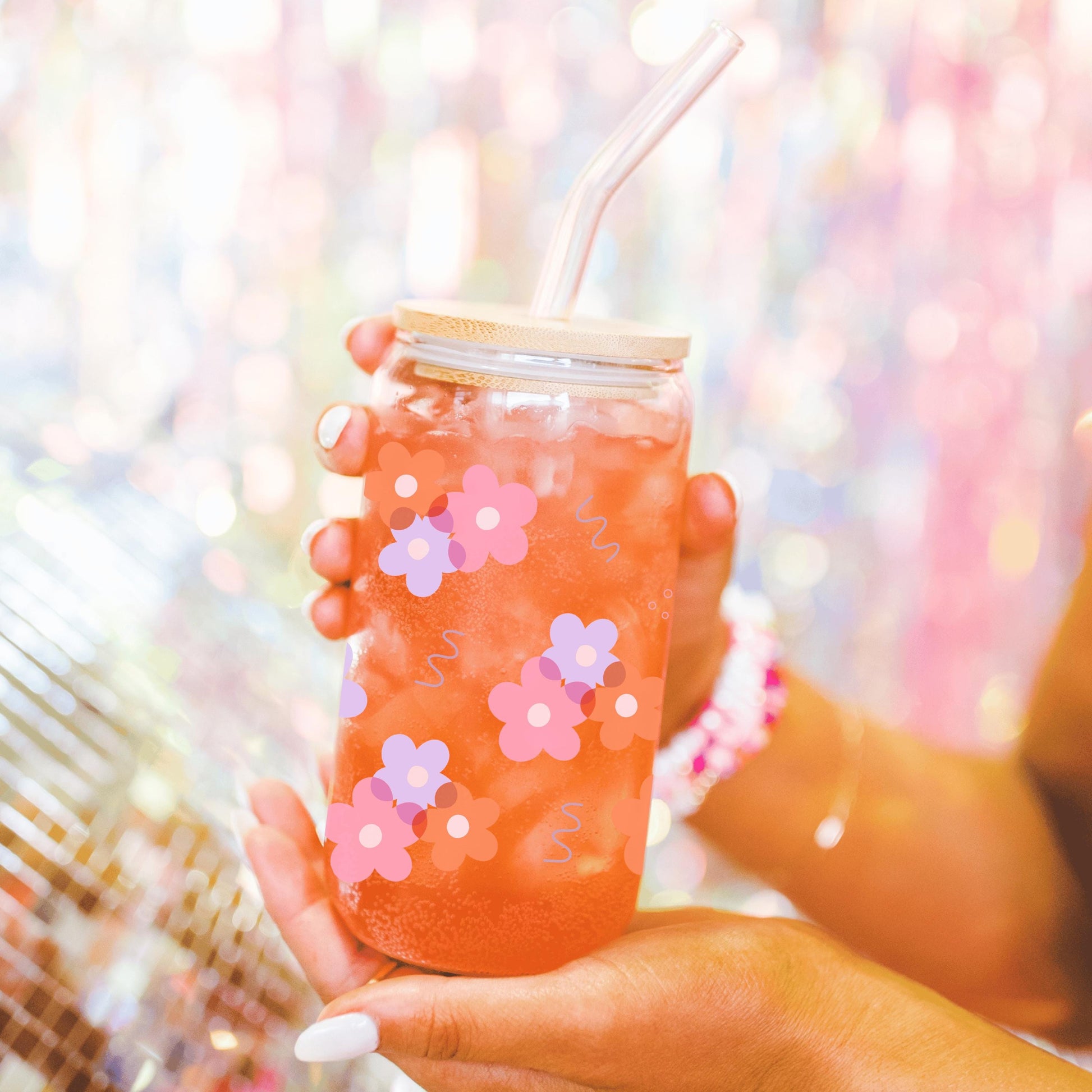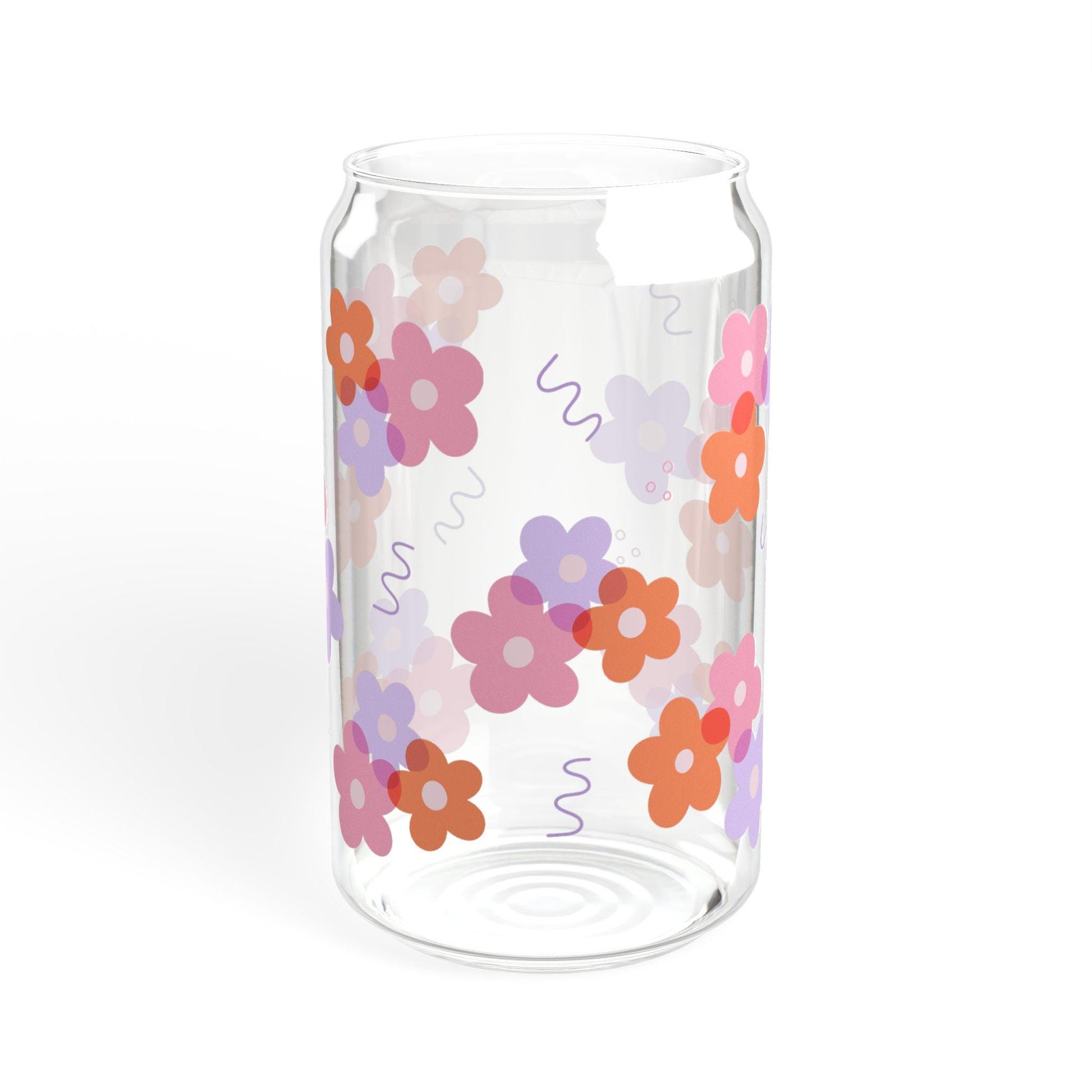 Girly Floral glass cup with bamboo lid glass straw, Cute Cup Beer Can Iced Coffee Glass Cup Cute funny Glass Cup gift for her
