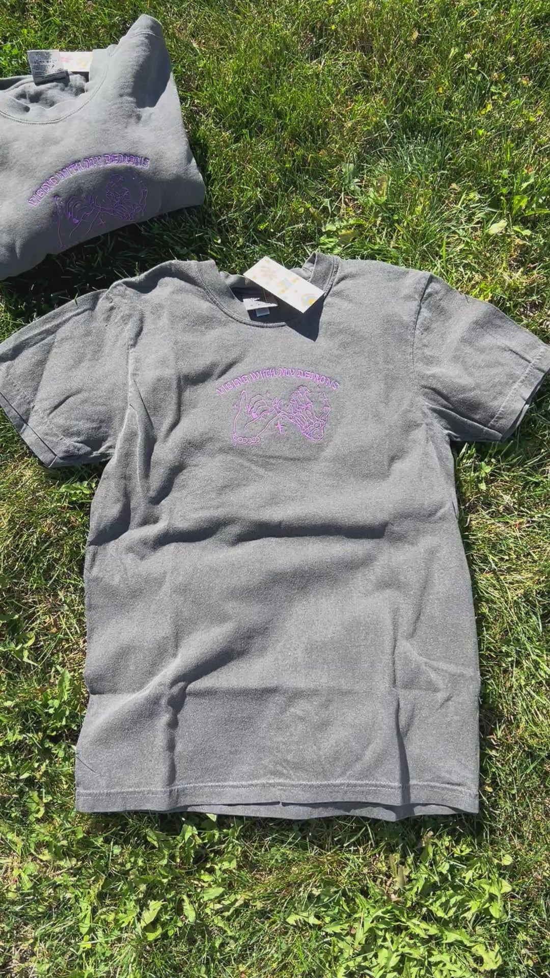 Add a touch of fun and flair to your wardrobe with the Vibin with my Deoms embroidered T-shirt. Featuring charming stitched details, this playful tee combines comfort with unique style, making every vibe a little more special. Perfect for those who love to stand out while keeping it casual.