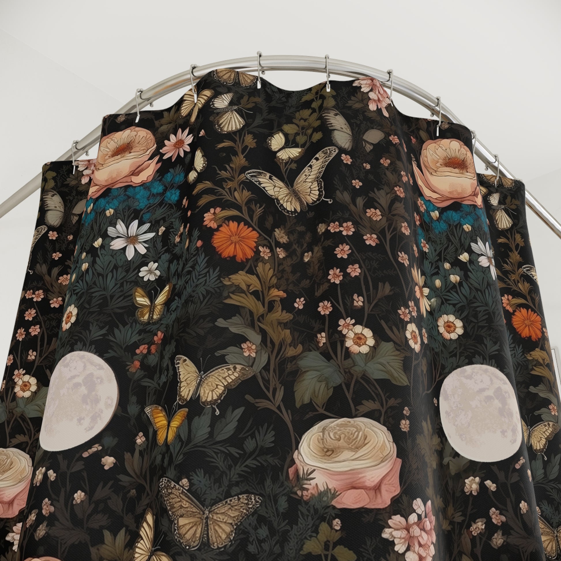 Complete the Dark Cottagecore Look: Pair this shower curtain with other witchy bathroom accessories (think moon phases, cauldrons!) for a truly magical experience.