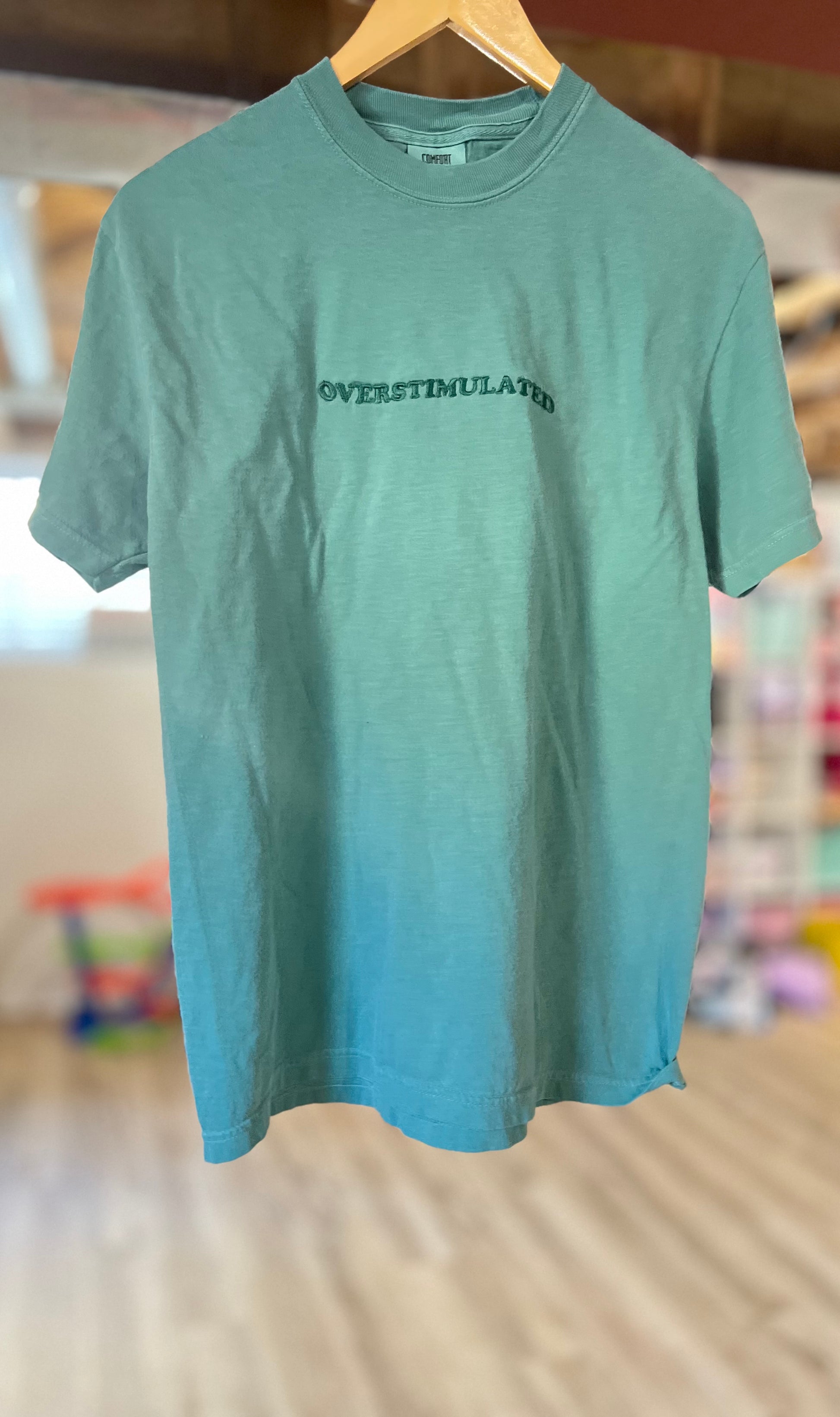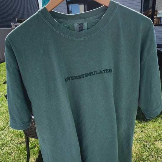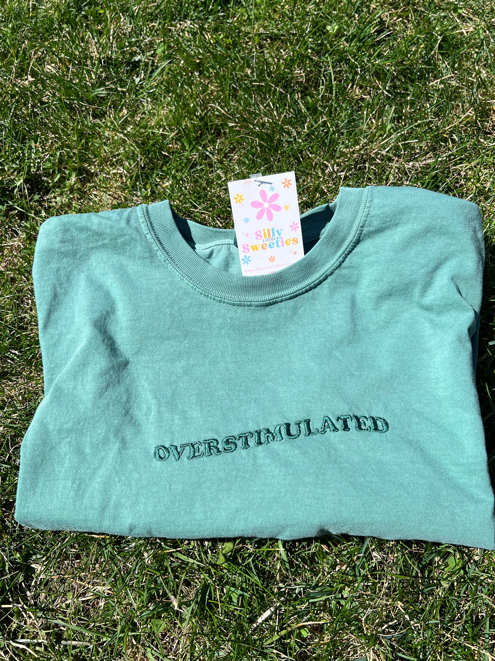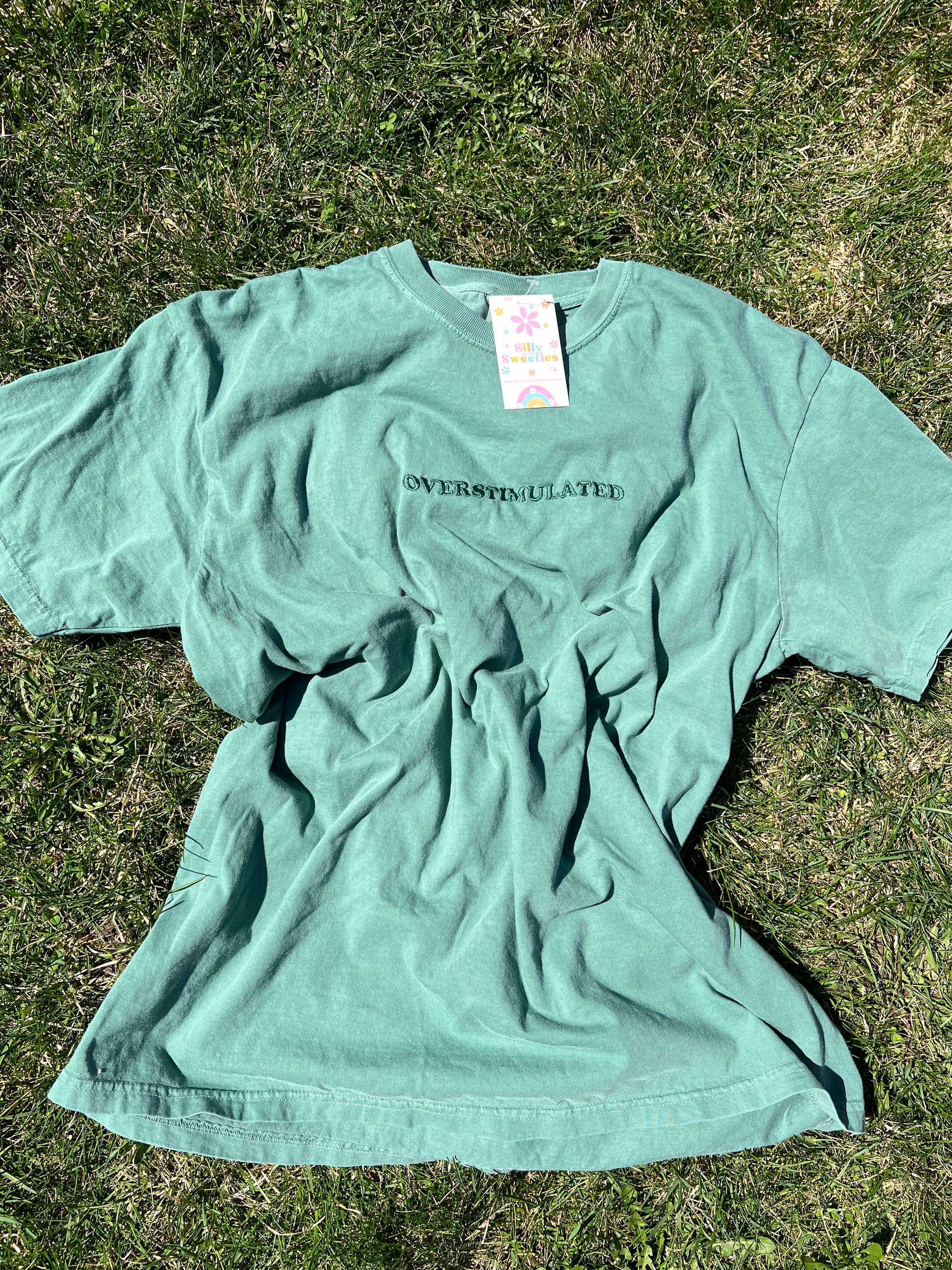 Unapologetically bold and bright, this Overstimulated t-shirt in the popular vintage garment dyed Comfort Colors shirt brand is perfect for those who embrace their hyperactive side. Made with quality materials for maximum comfort, it'll keep up with your non-stop energy. Don't settle for basic tees, stand out and let your overstimulated personality shine with this playful and fun shirt!