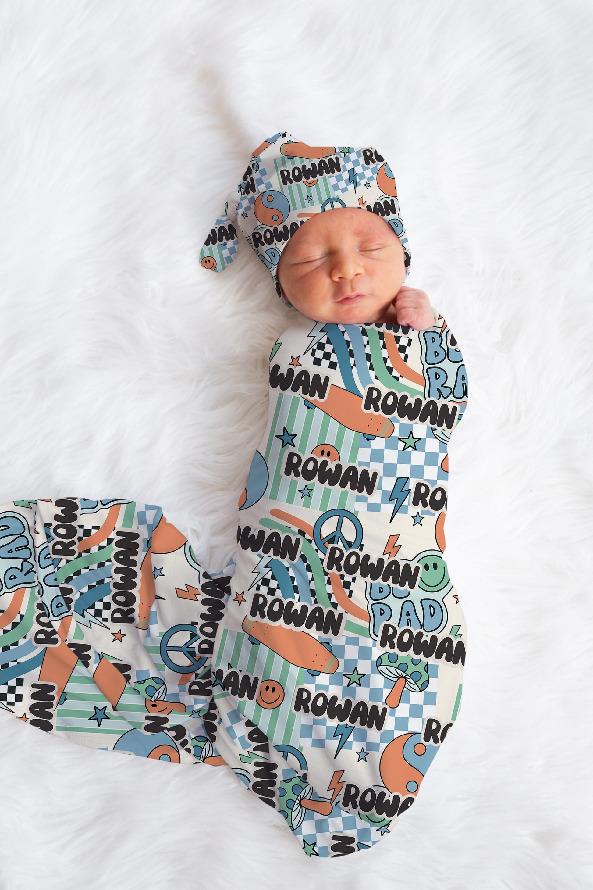 Crafted from soft, high-quality fabric, the swaddle blanket ensures your newborn stays cozy and comfortable, while the matching hat provides extra warmth and completes the adorable look. The patchwork design adds a unique and stylish touch, making this set stand out. Both the swaddle and hat can be personalized, adding a special touch to your babys first outfit.