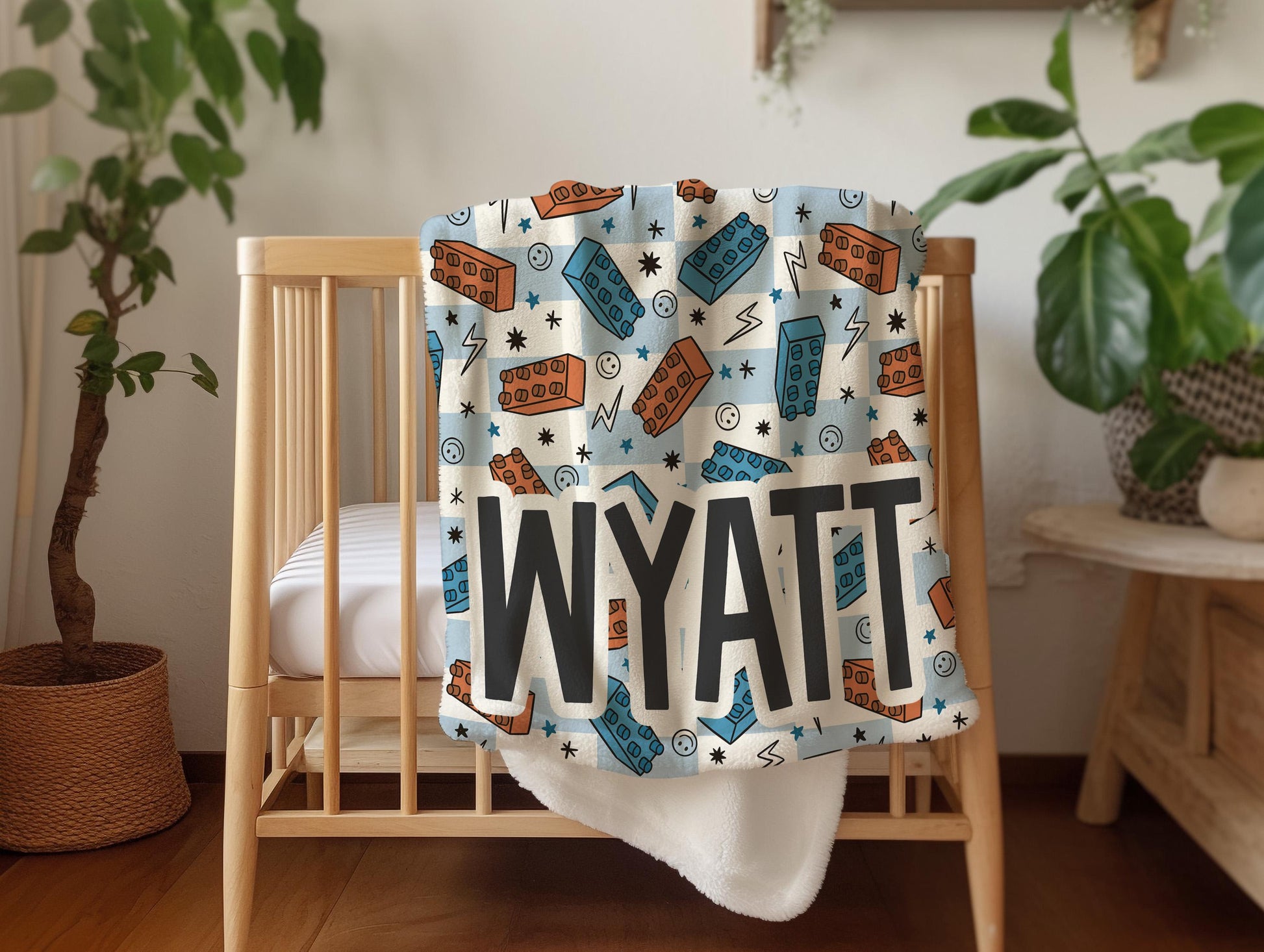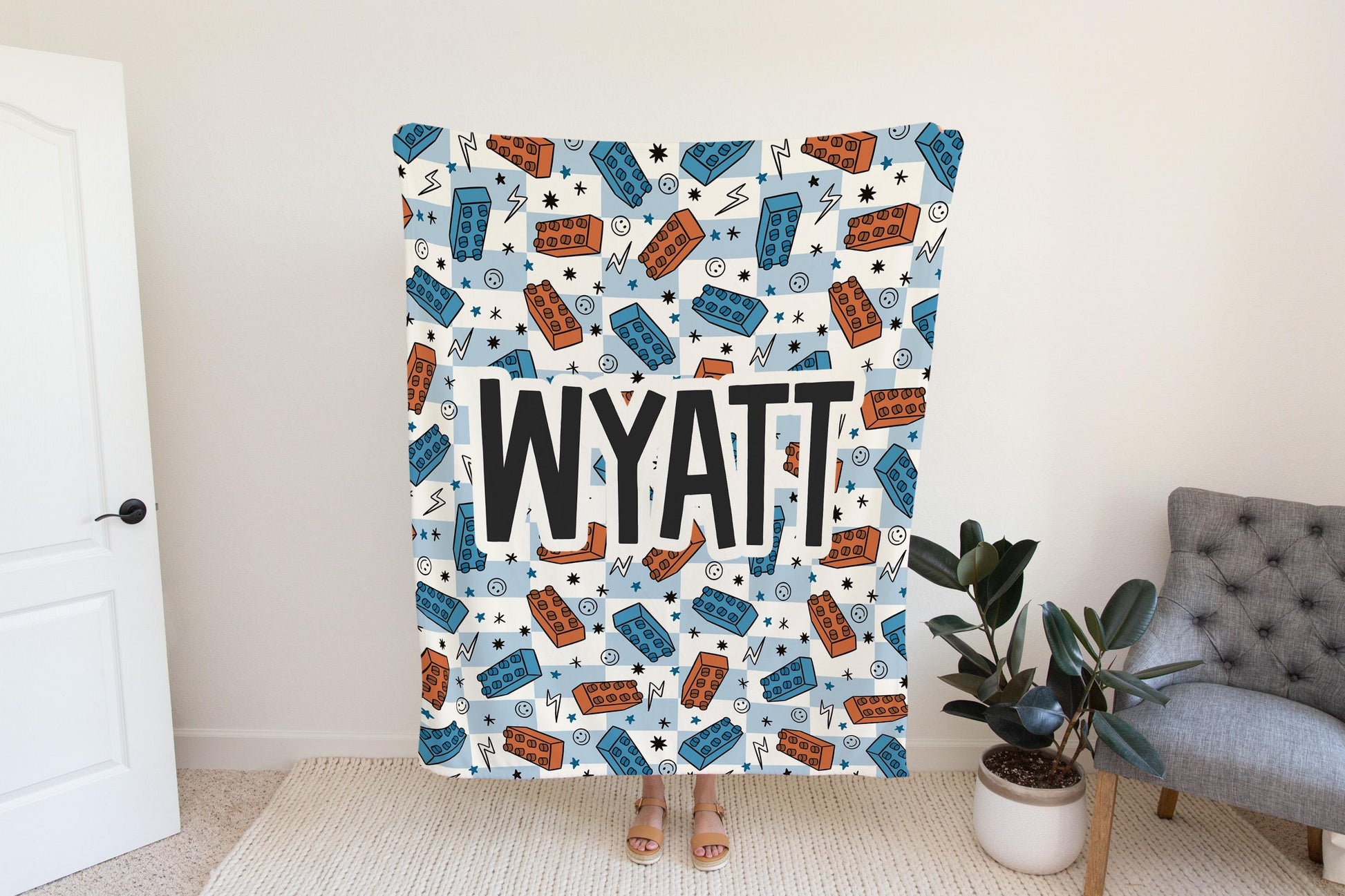 Personalized blanket for boys, blocks blanket, checkered throw, birthday gift for him, custom name baby blanket, baby shower gift