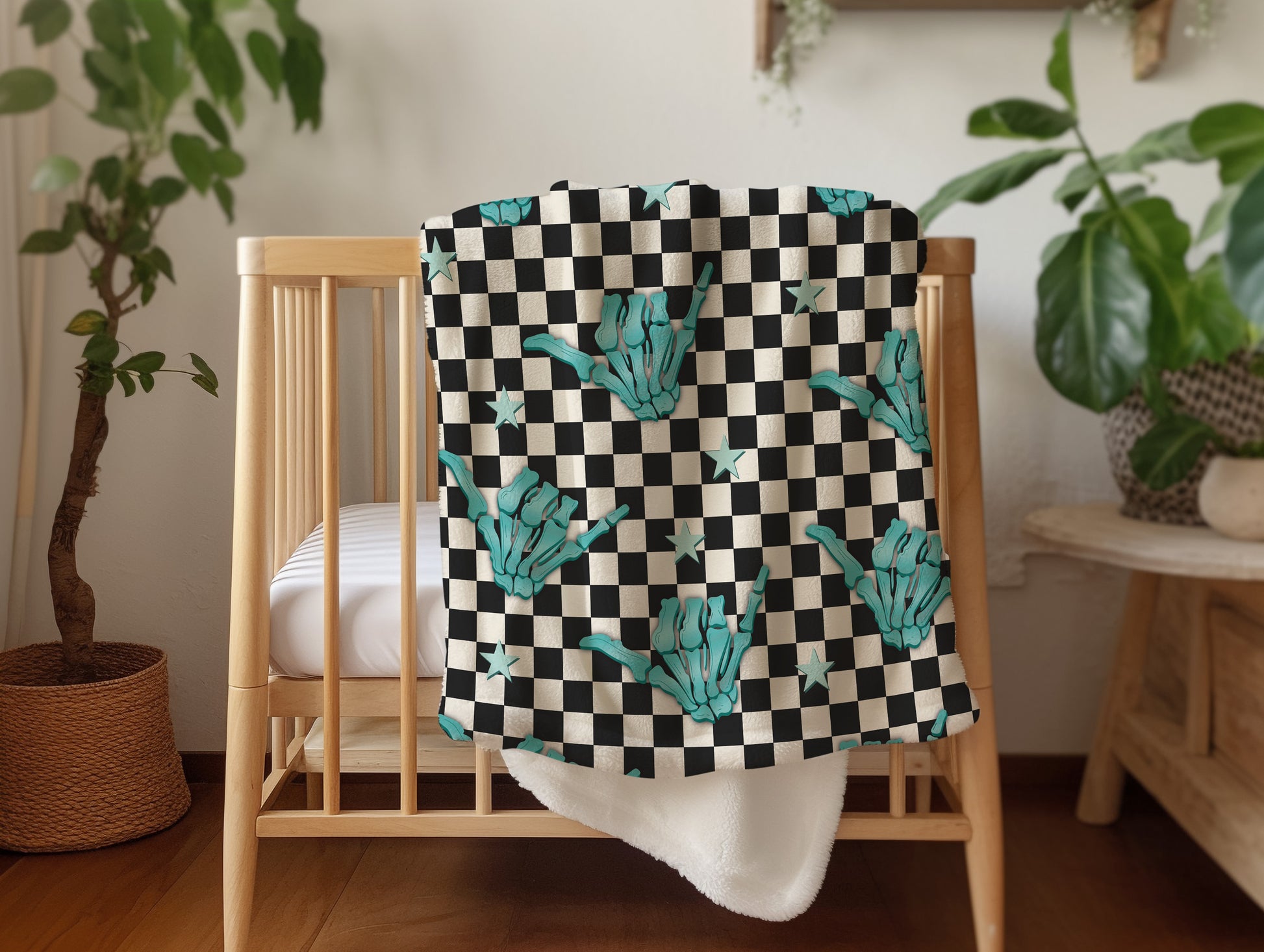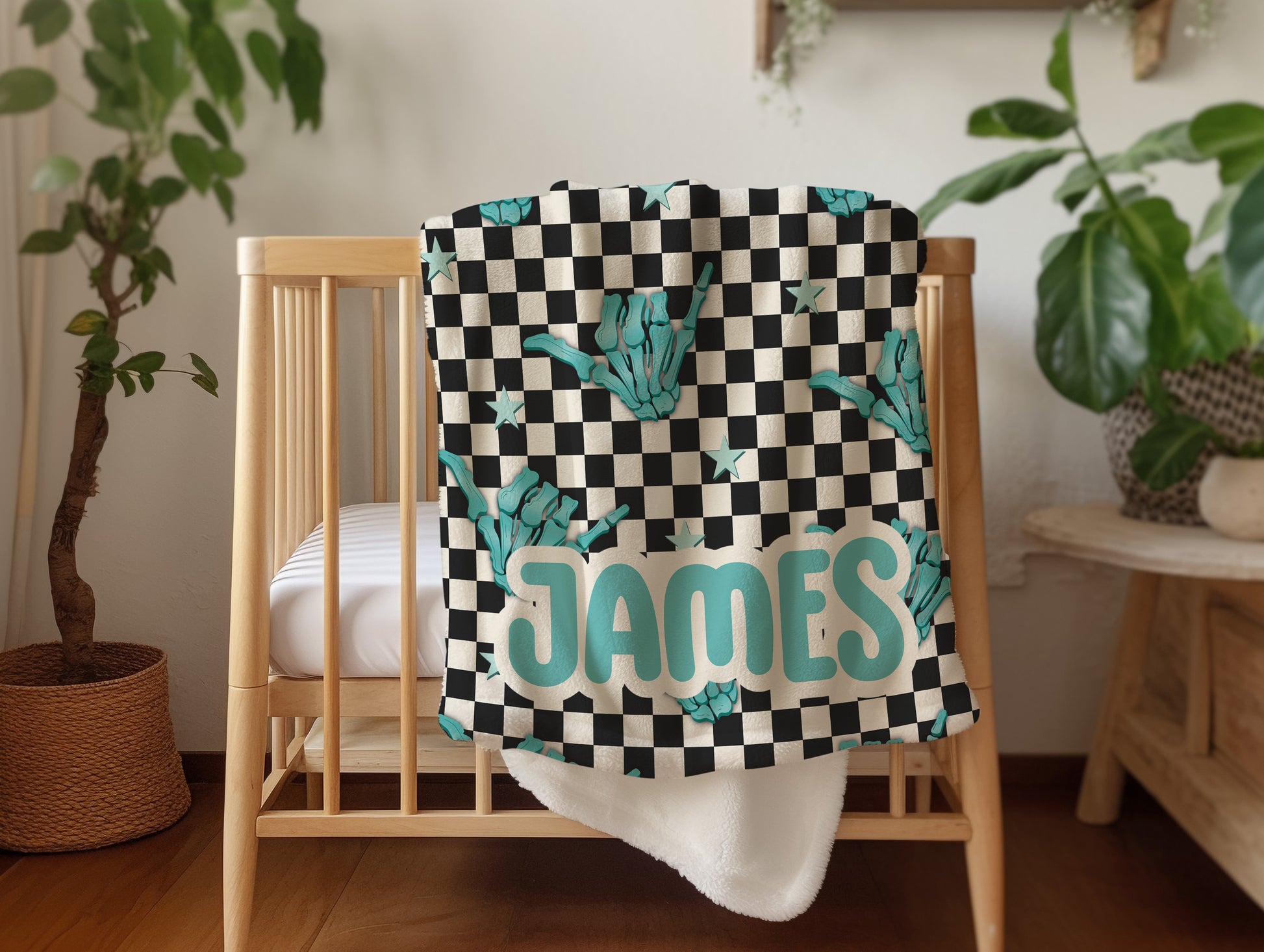 This isn't your average baby blanket! The Personalized Rocker Baby Blanket is a one-of-a-kind gift that celebrates the little rockstar in your life. Featuring a bold checkered pattern and the option to personalize it with a name, this blanket is sure to become a cherished companion for years to come.