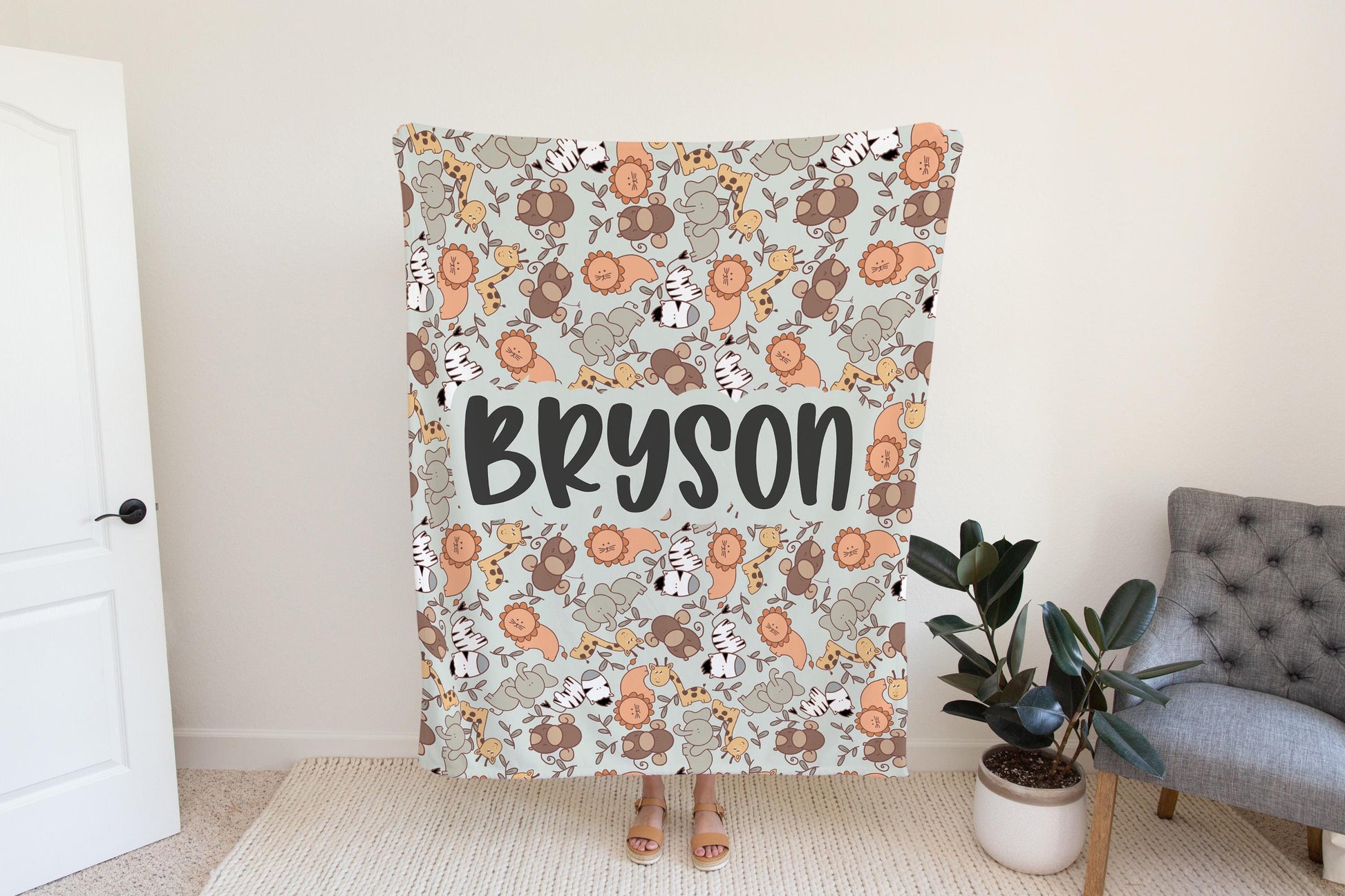 Make your little ones space feel extra special with our Personalized Safari Animal Blanket! Featuring an adorable zoo theme with playful safari animals, this custom name blanket is perfect for boys and unisex baby decor. Whether its for snuggling, playtime, or a cozy nap, this blanket will be your childs new favorite.