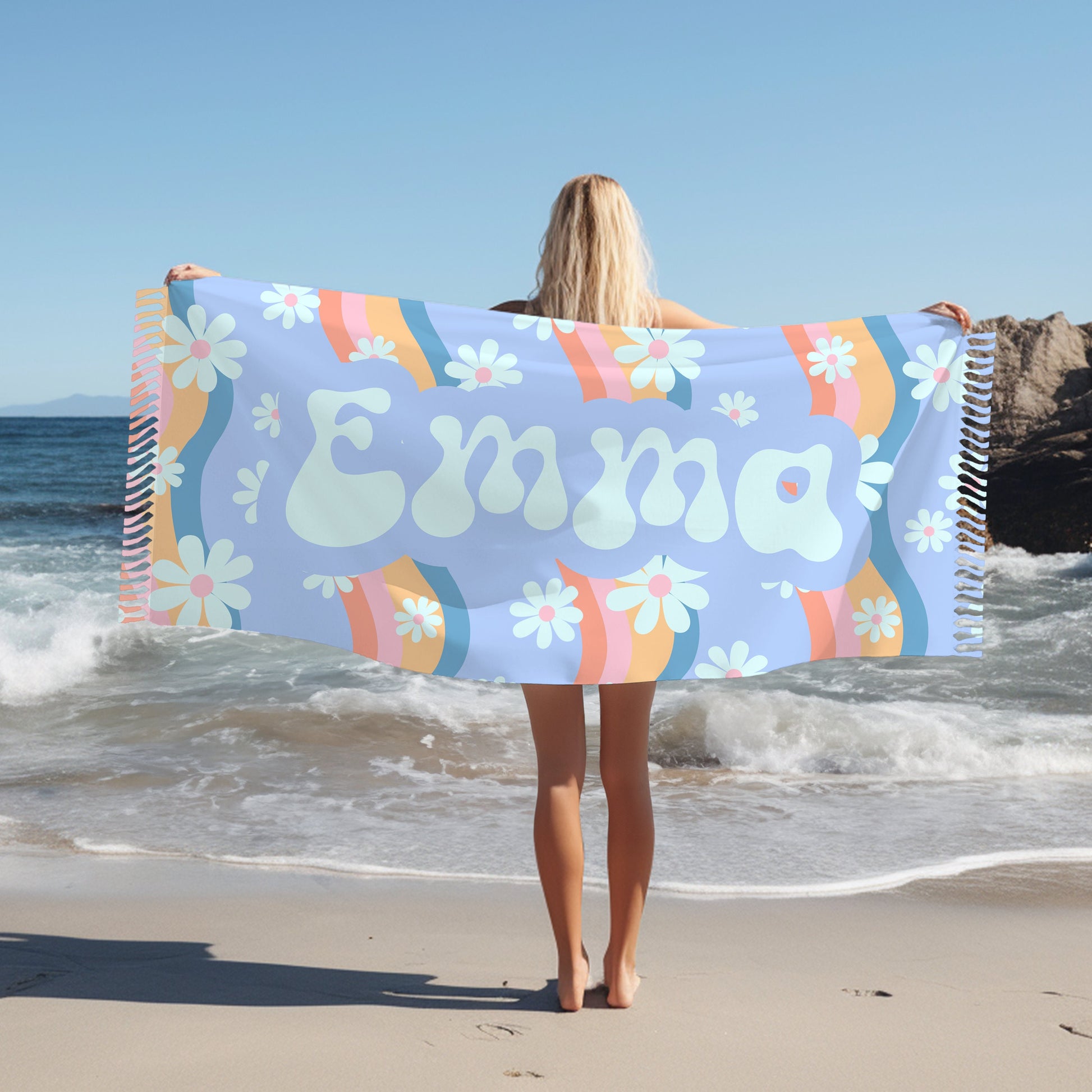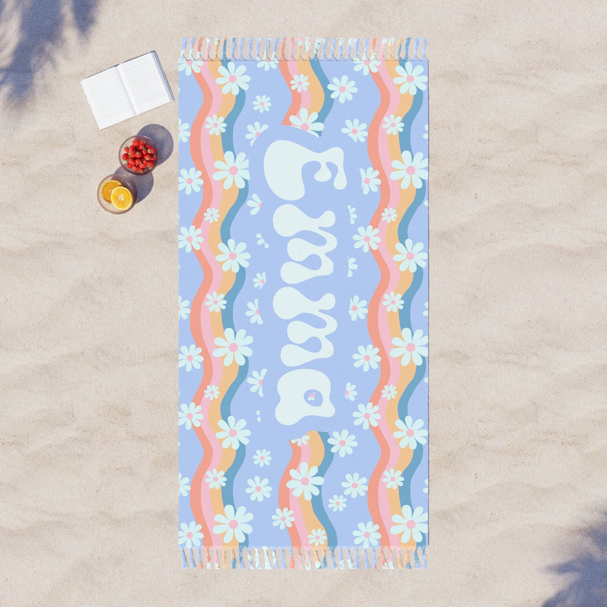 Dive into personalized luxury with our exquisite Personalized blue Groovy Beach towel – a thoughtful and stylish gift that's perfect for birthdays, anniversaries, or any special occasion! Crafted with meticulous attention to detail, this custom beach towel is designed to elevate your beach outings and make a splash at pool parties.