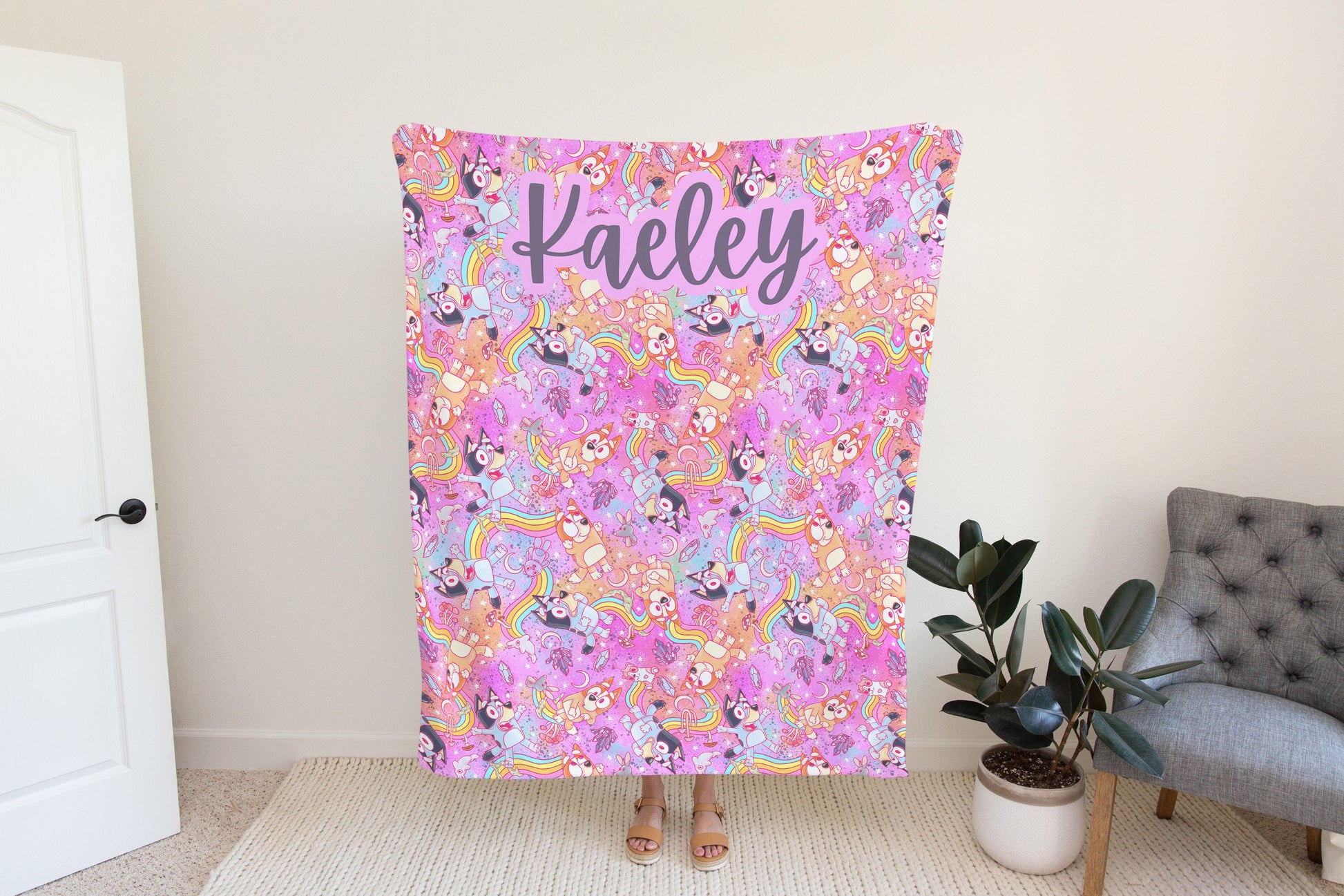 Perfect for Bluey fans, this custom name blanket adds a stylish and playful touch to your child’s bedding collection. Whether for a Bluey-themed bedroom or as a special surprise, this personalized blanket is an unforgettable gift.
