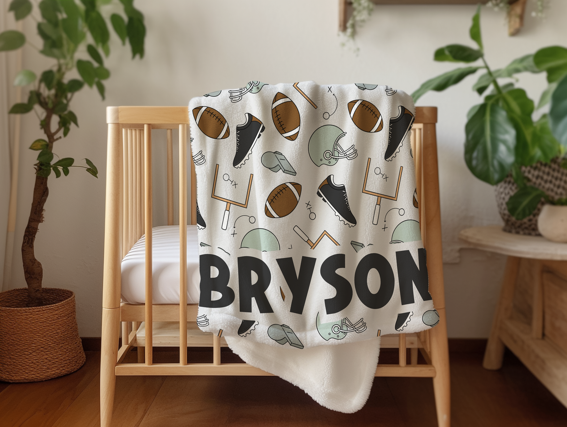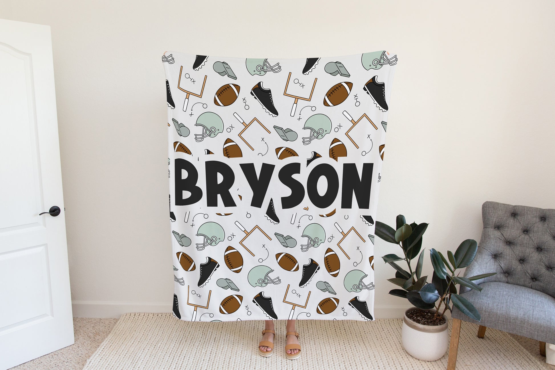 Whether you're shopping for a newborn, toddler, or growing sports star, this custom football blanket is a winning gift!