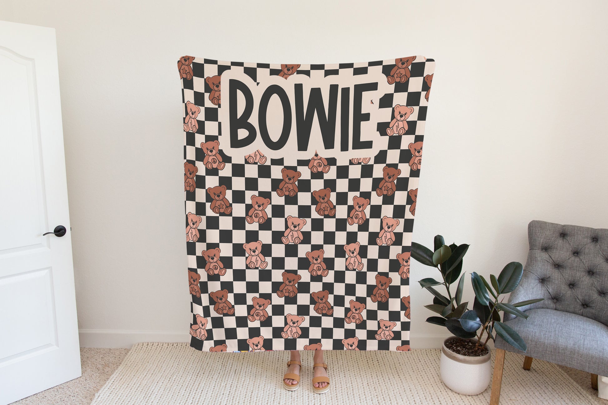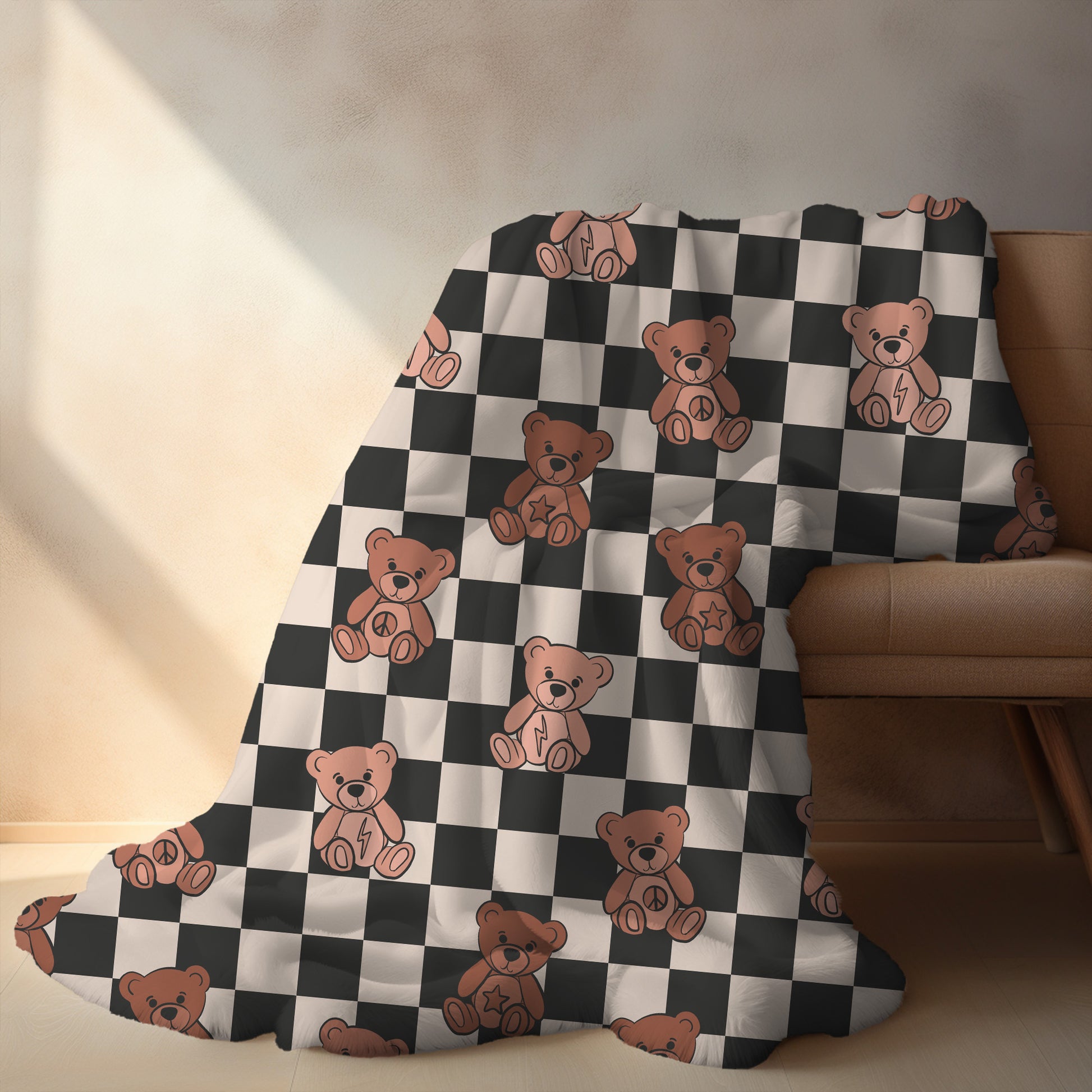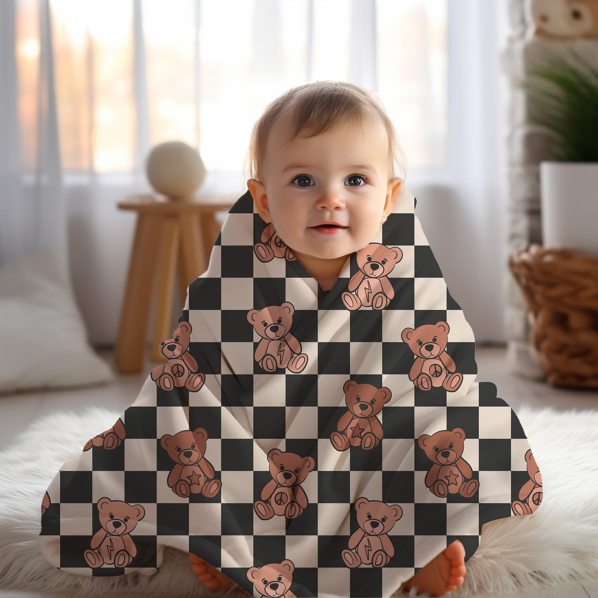 Give your little one the gift of comfort and charm with our Personalized Teddy Bear Blanket! Featuring an adorable teddy bear design with a stylish checkered pattern, this blanket is perfect for boys of all ages and makes a thoughtful keepsake for any special occasion.