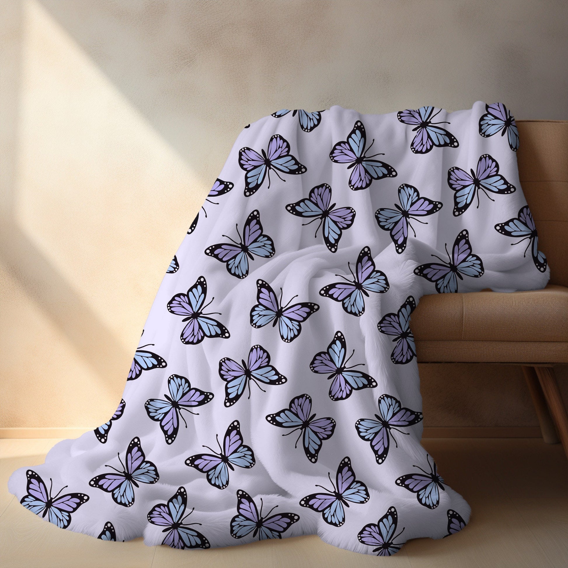 Crafted from premium, ultra-soft materials, this blanket offers both warmth and style. The intricate butterfly design in soothing purple tones adds a whimsical, bohemian flair, making it a delightful addition to any room. Personalize it with a name or special message for a unique and heartfelt touch.