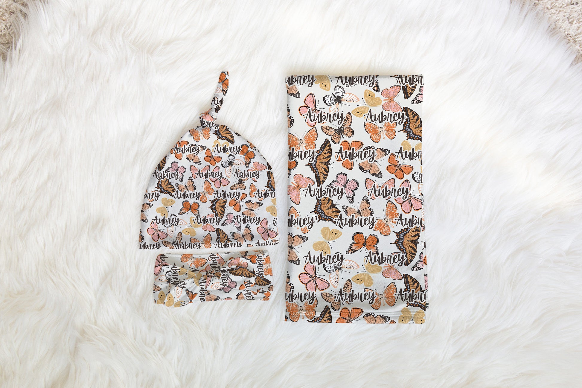Personalized Butterfly Swaddle Bow or Hat Set